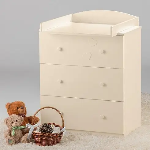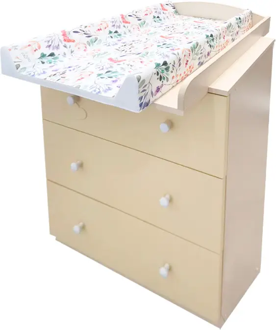Все материалы, применяемые при изготовлении – экологически чистые и гипоаллергенные. Комод имеет 3 больших выдвижных ящика на прочных направляющих. Оборудован съёмной пеленальной доской с защитными бортиками. Когда ребёнок вырастёт, пеленальный комод не потеряет своей актуальности среди мебели детской комнаты – он легко трансформирует в обычный комод для одежды и прочих вещей.