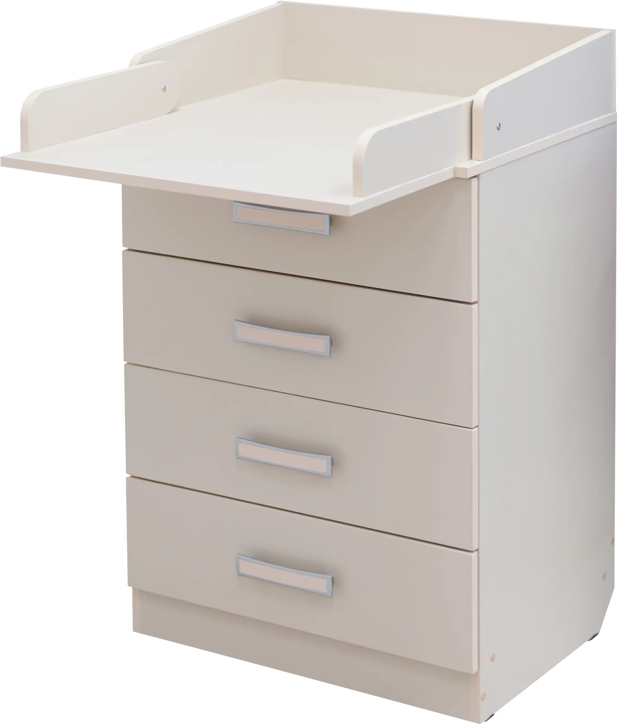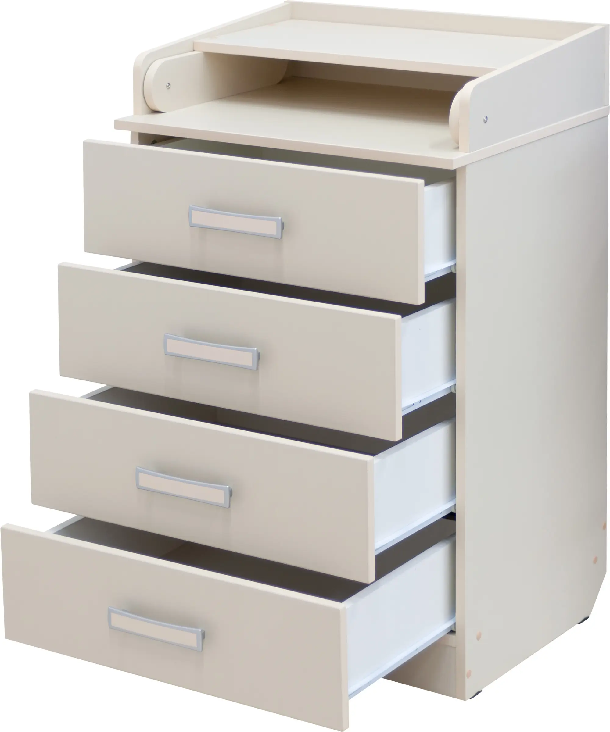 4 глубоких ящика для детских принадлежностей выдвигаются легко и бесшумно, оснащены удобными мебельными ручками.