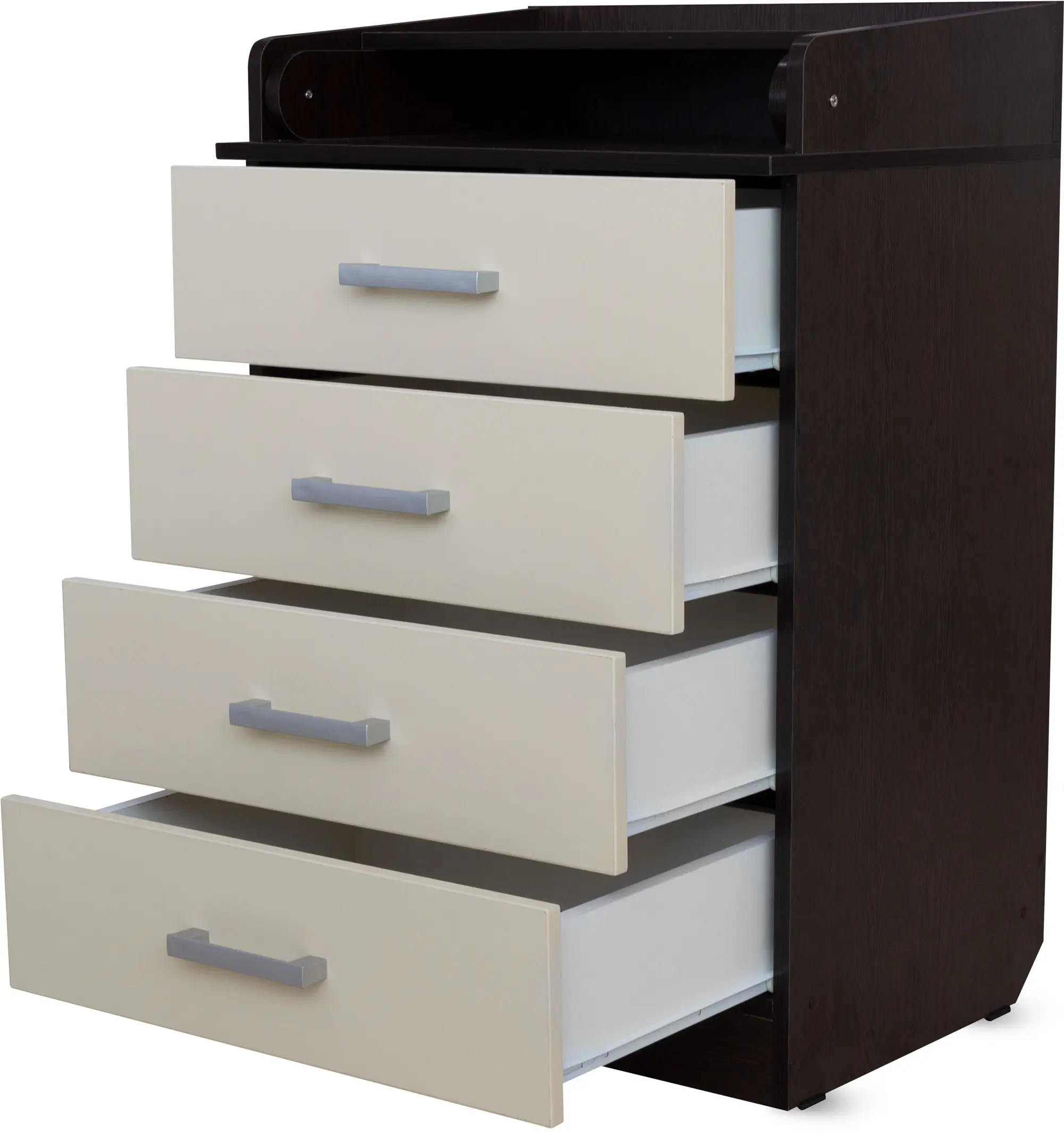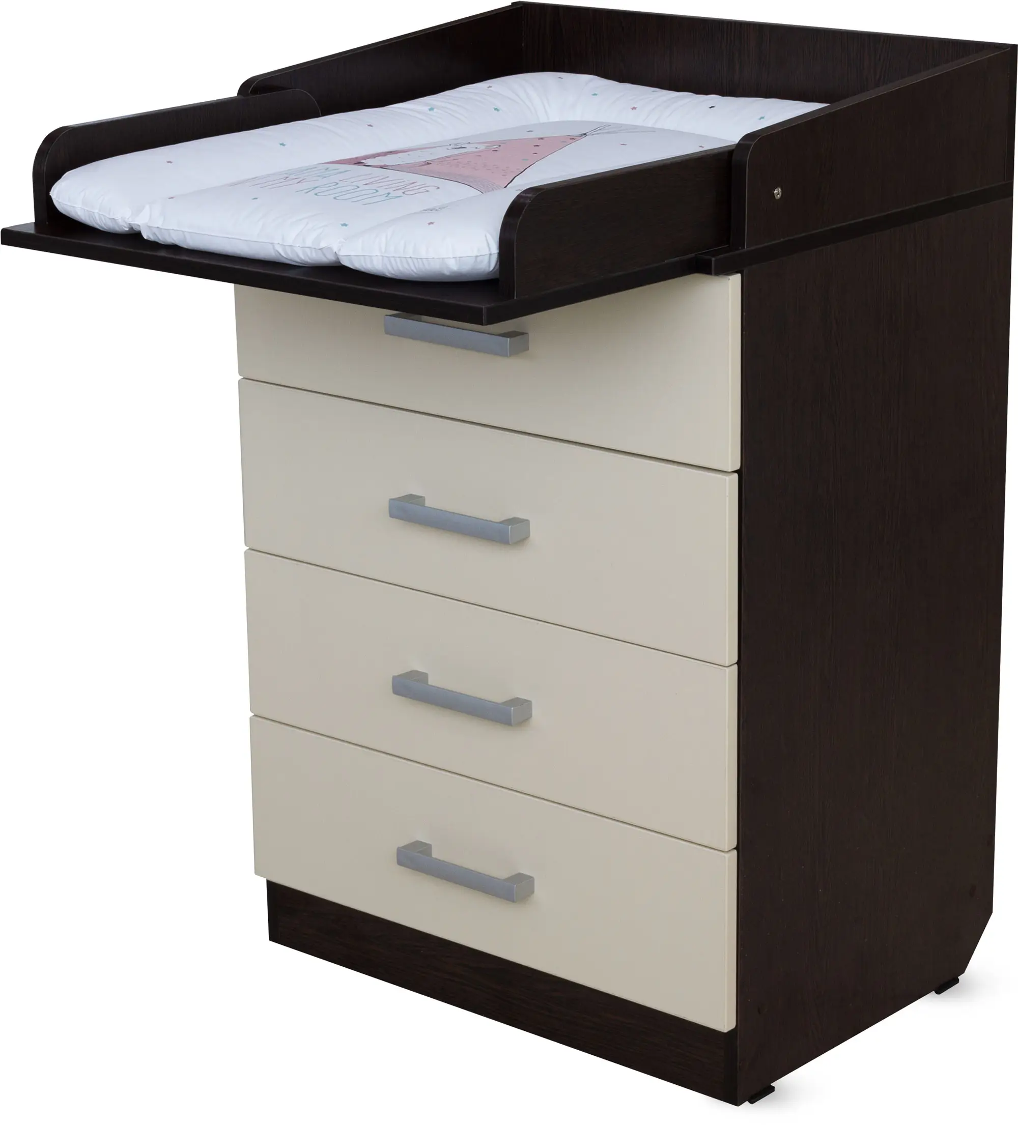 4 глубоких ящика для детских принадлежностей выдвигаются легко и бесшумно, оснащены удобными мебельными ручками.