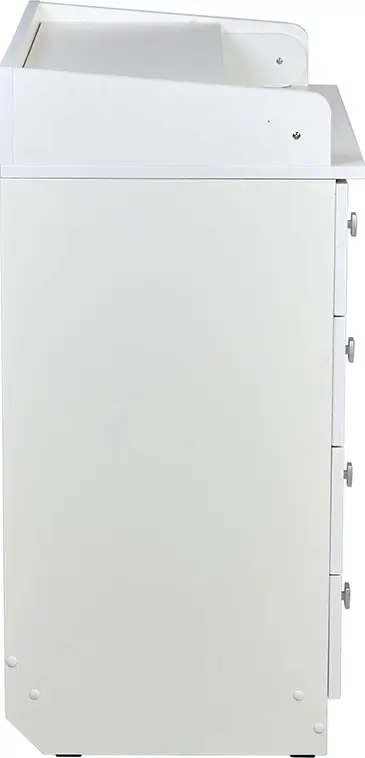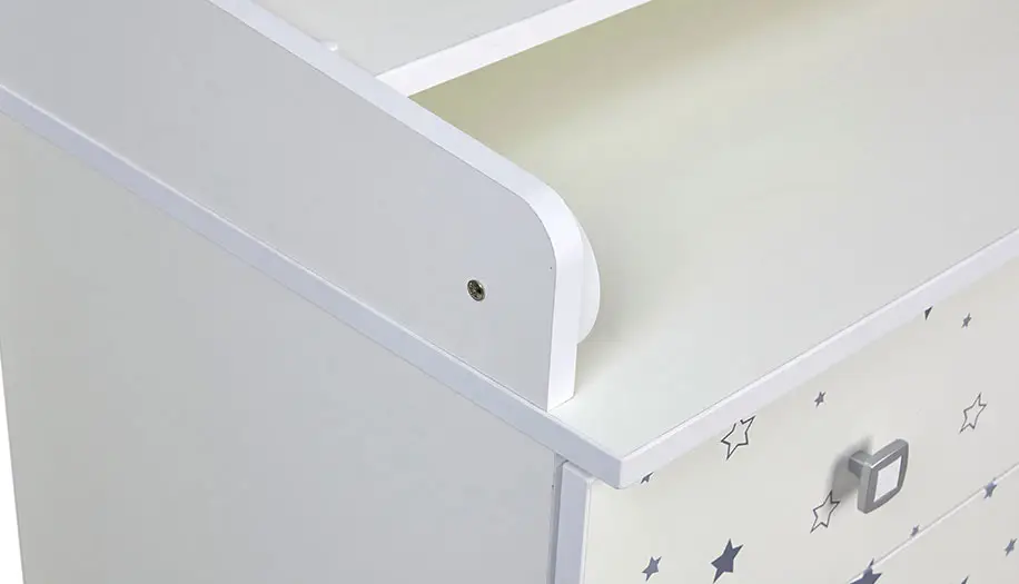 Комод Фея 1580 Бегемотик оснащён откидным пеленальным столиком, благодаря чему отлично подходит для смены подгузника, массажа или переодевания ребёнка. При откидывании пеленальной поверхности по всем сторонам образуются плавные защитные бортики.