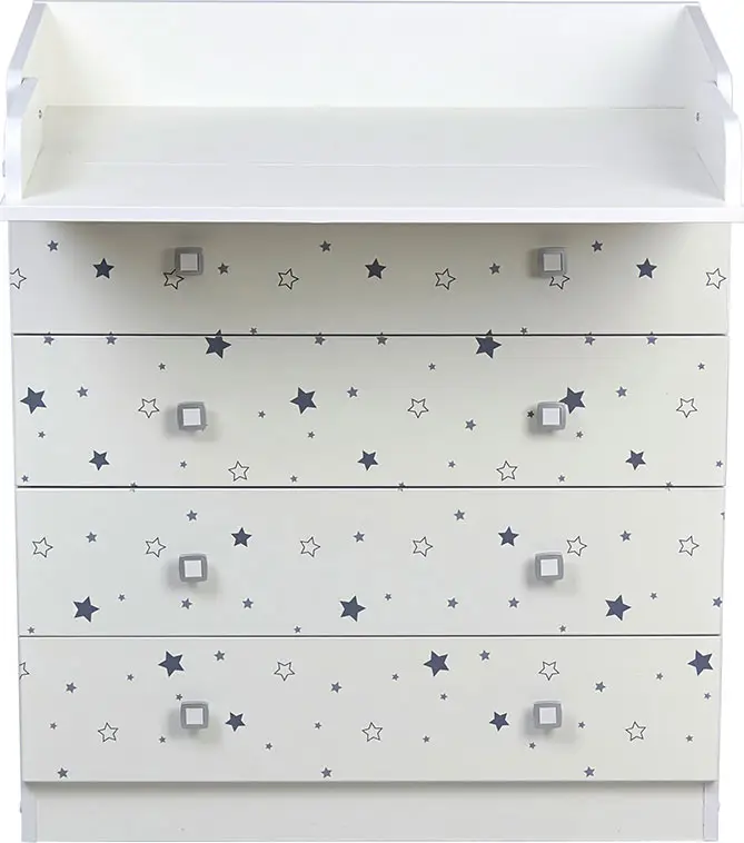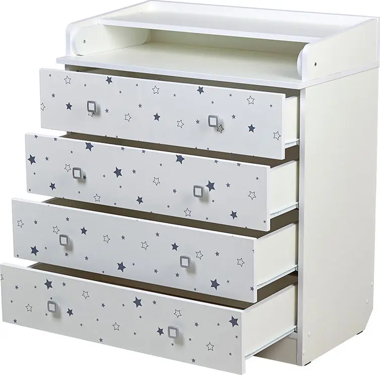 4 глубоких ящика для детских принадлежностей выдвигаются легко и бесшумно, оснащены удобными мебельными ручками.