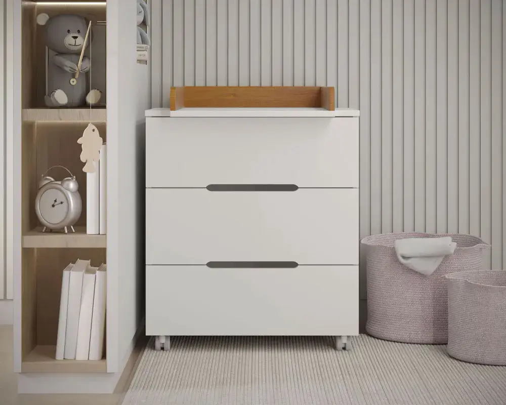 Отсутствуют острые углы – все элементы закруглённые, что делает комод удобным и безопасным для малыша.