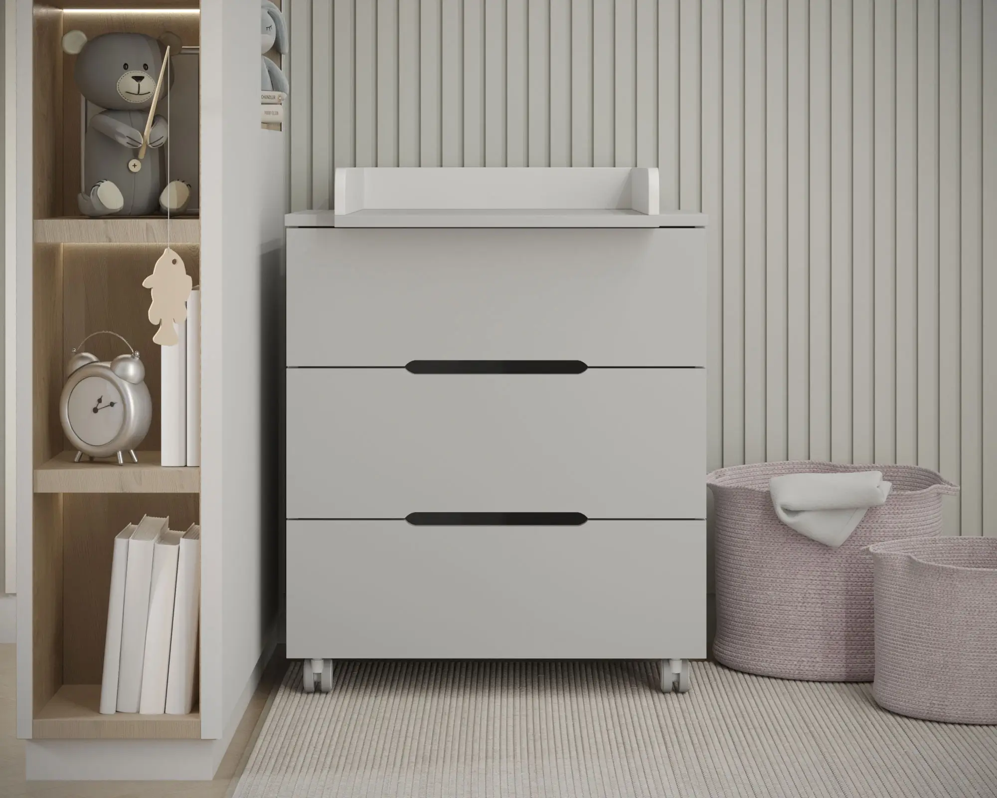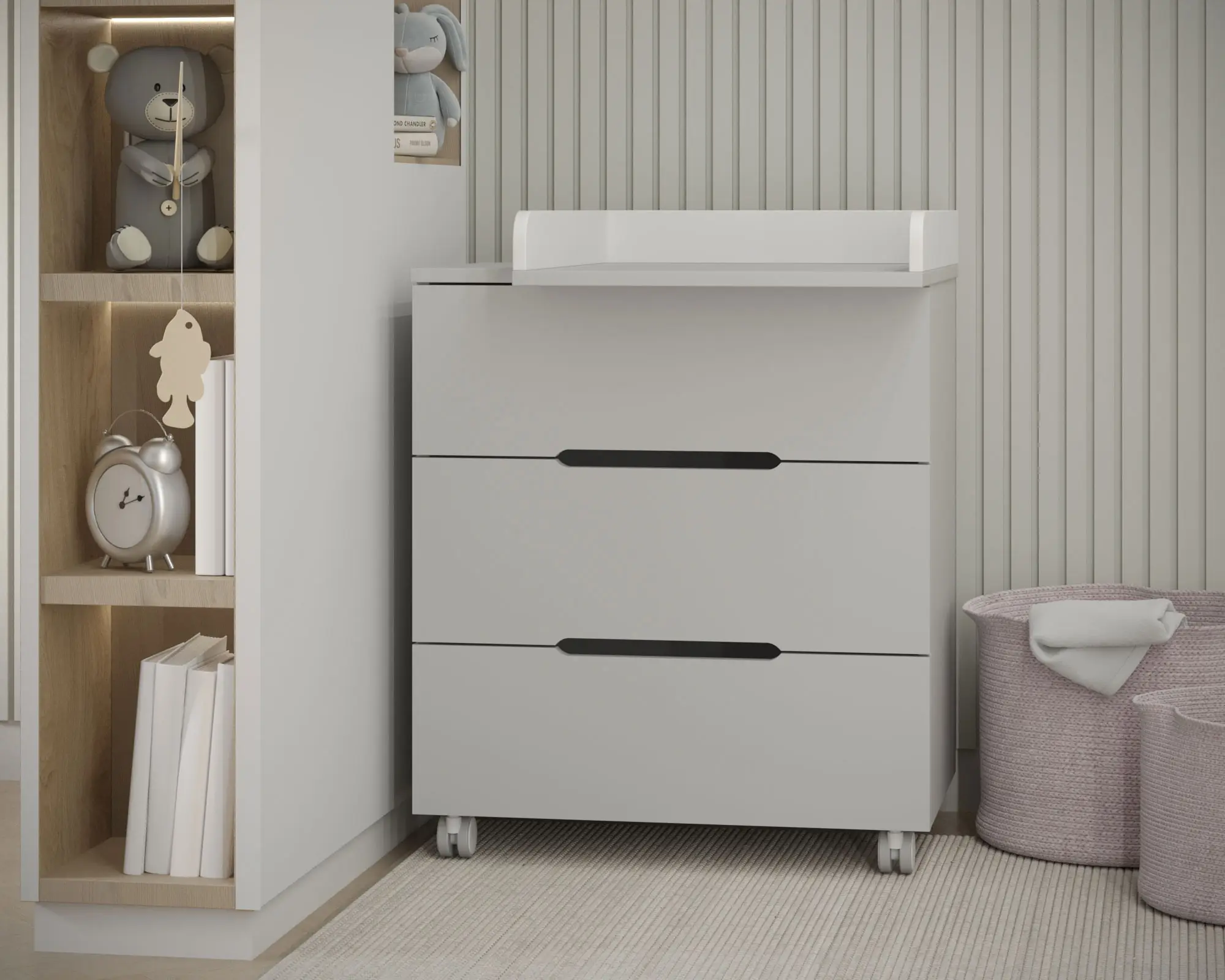 Удобный и универсальный пеленальный комод, выполненный в скандинавском стиле, является отличным дополнением для детской комнаты.