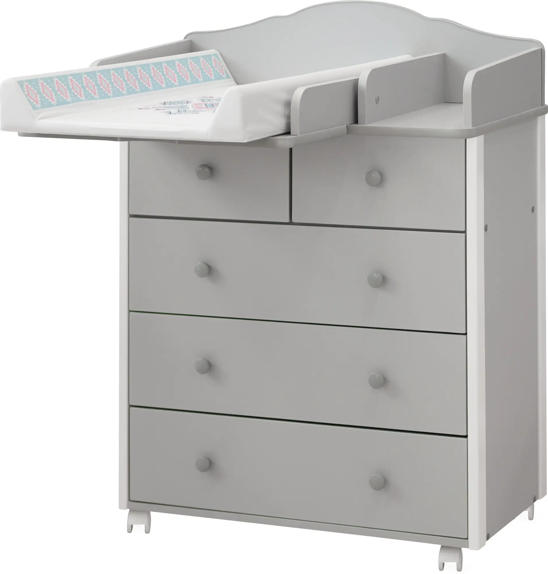 Комод Loona Daisy 800/4 с откидной пеленальной доской, серый/белый