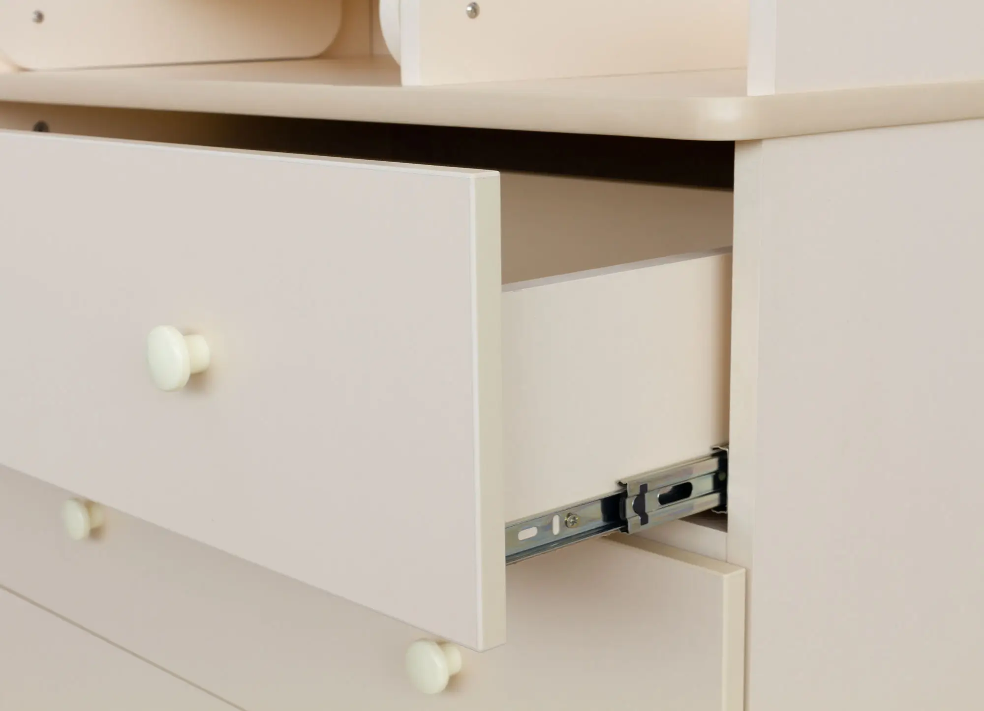 Отсутствуют острые углы – все элементы закруглённые, что делает комод удобным и безопасным для малыша.