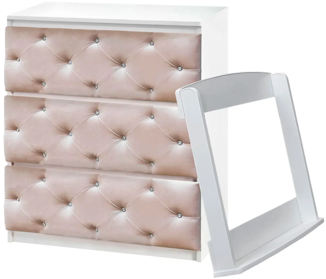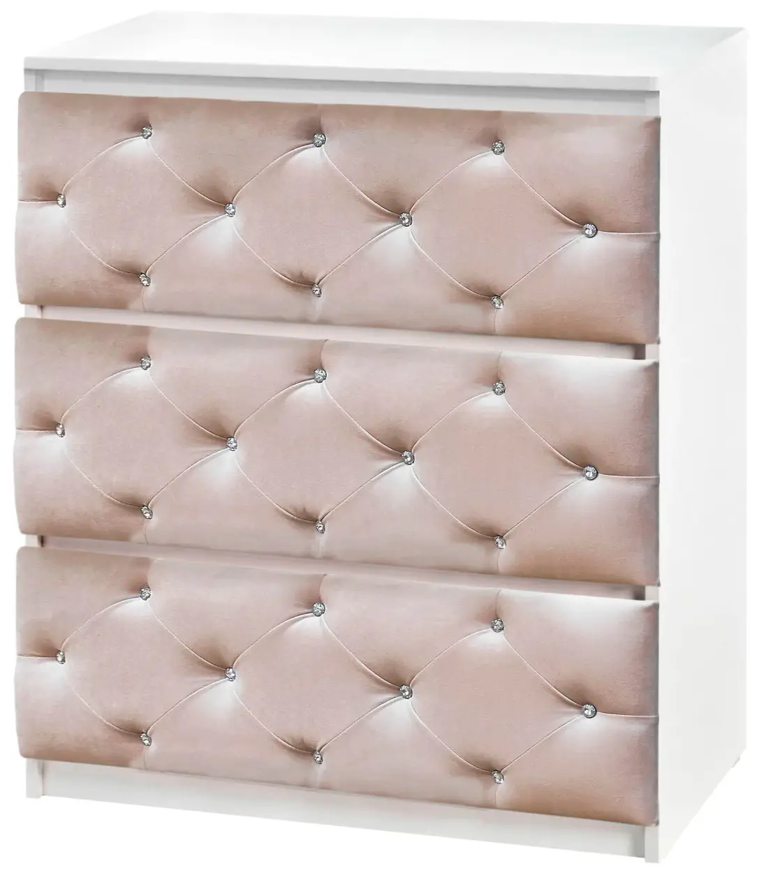 Изготовлен из безопасных материалов – ЛДСП, МДФ. Ящики покрыты мягкой тканью с каретной стяжкой.