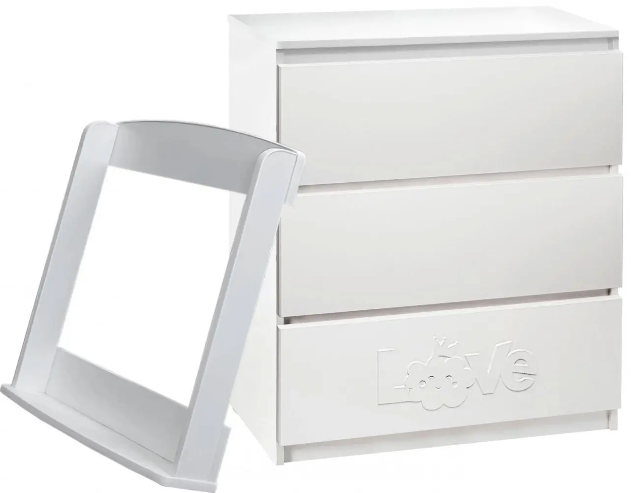 Съёмный пеленальный столик с защитными бортиками. В дальнейшем его можно полностью демонтировать, продолжив использовать комод в классическом его стиле.