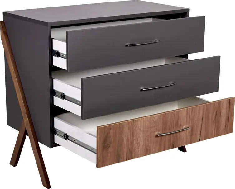 3 глубоких ящика для детских принадлежностей выдвигаются легко и бесшумно, оснащены удобными мебельными ручками. Ящики на шариковых направляющих.