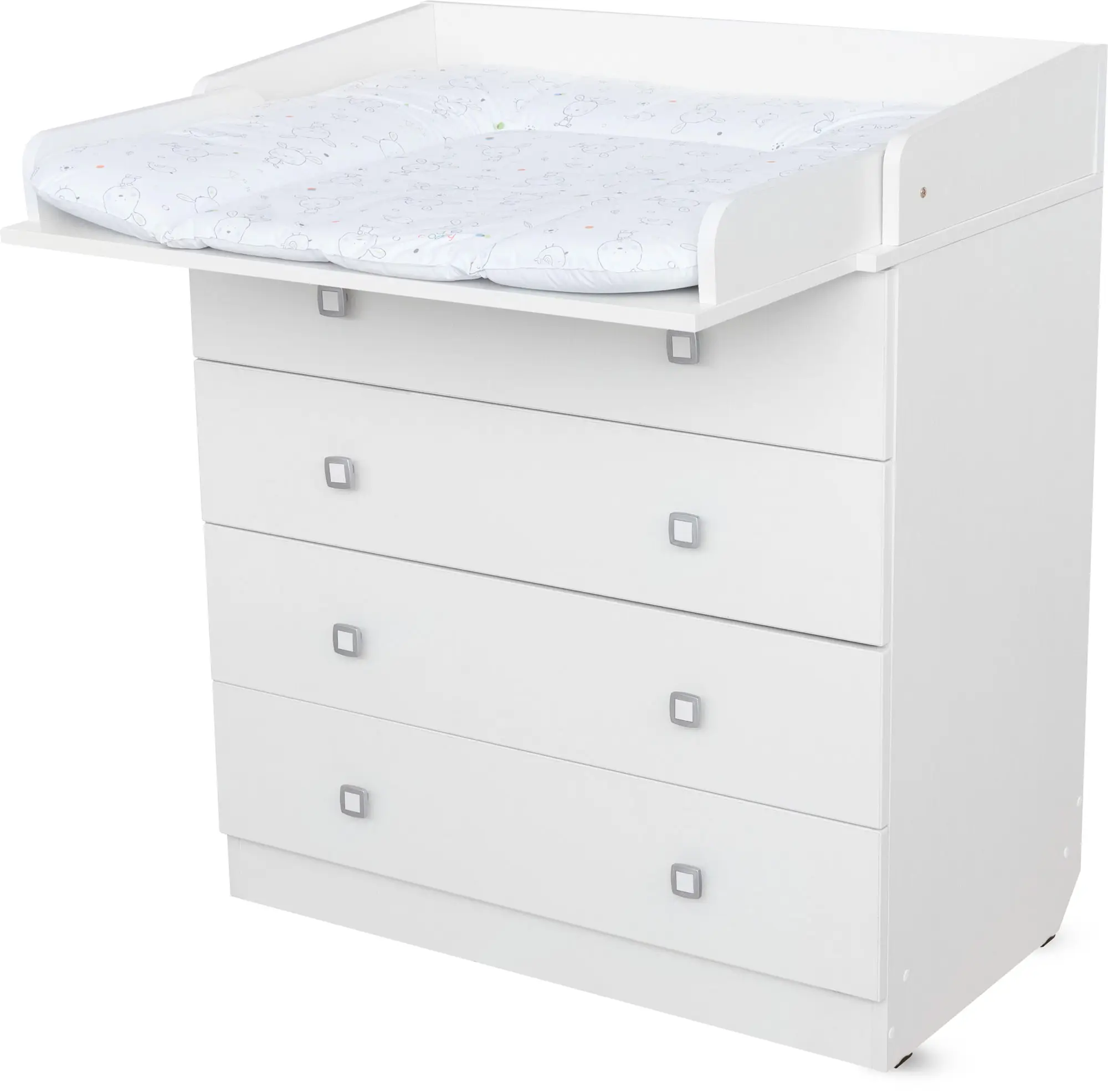 Модель максимально функциональна – совмещает в себе комод и пеленальный столик. В комоде удобно хранить все детские принадлежности – вещи, игрушки, постельное бельё, подгузники, крема, присыпки. Когда ребёнок подрастёт, вы сможете снять пеленальную доску и комод трансформируется в обычный предмет домашней мебели.