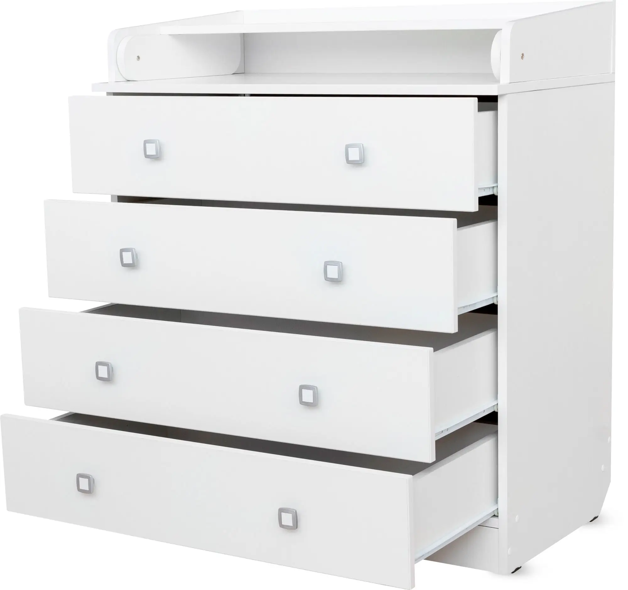 4 глубоких ящика для детских принадлежностей выдвигаются легко и бесшумно, оснащены удобными мебельными ручками.
