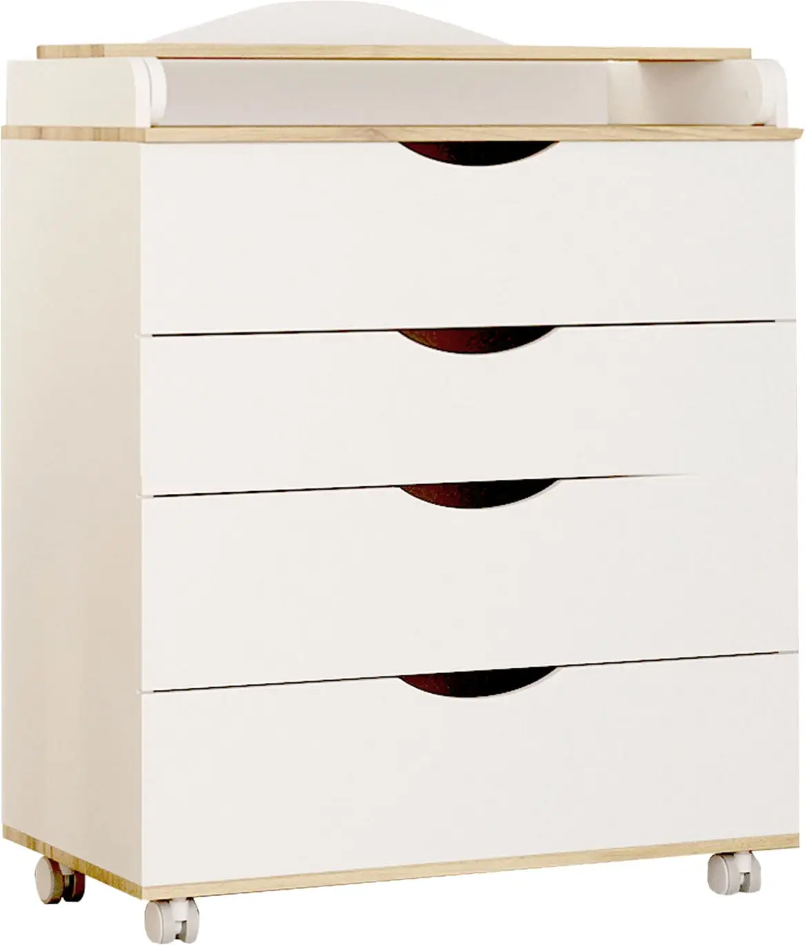 Отсутствуют острые углы – все элементы закруглённые, что делает комод удобным и безопасным для малыша.