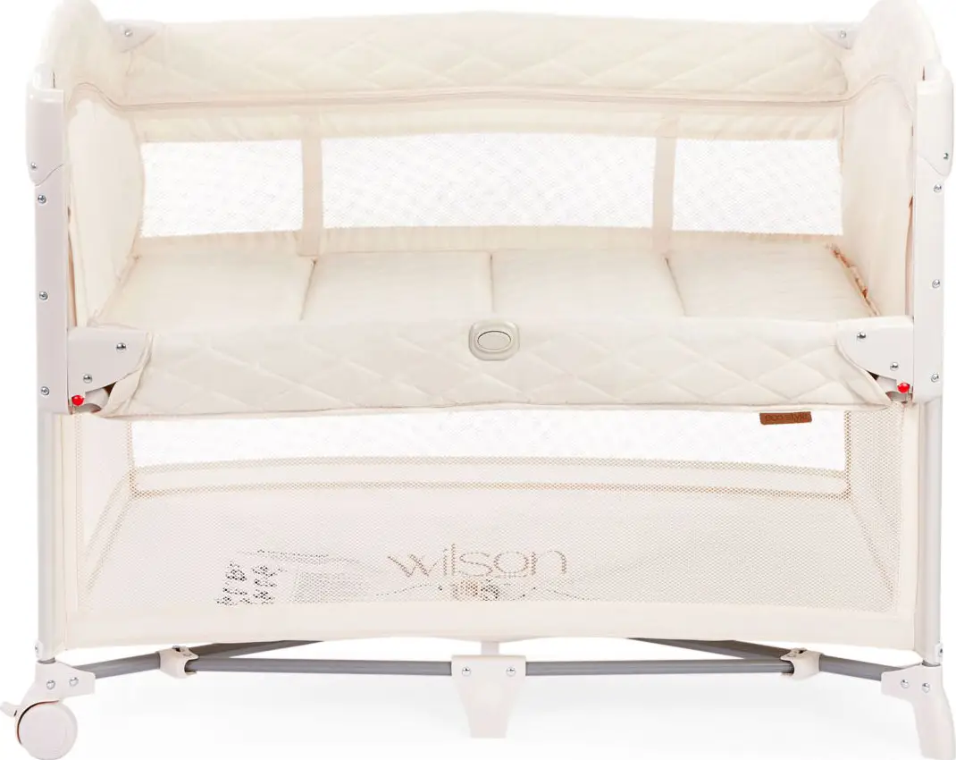 Низкий вес, компактный размер в разложенном виде и минимальный в сложенном делают манеж идеальным для поездок, а также квартир с небольшой площадью. Манеж легко превращается в комфортную кроватку. Стенка манежа опускается наполовину и позволяет установить его рядом с кроватью родителей для спокойного сна малыша и мамы. С манежем малыш везде будет чувствовать себя как дома и в безопасности, а неповторимый дизайн станет отличным дополнением любого интерьера.