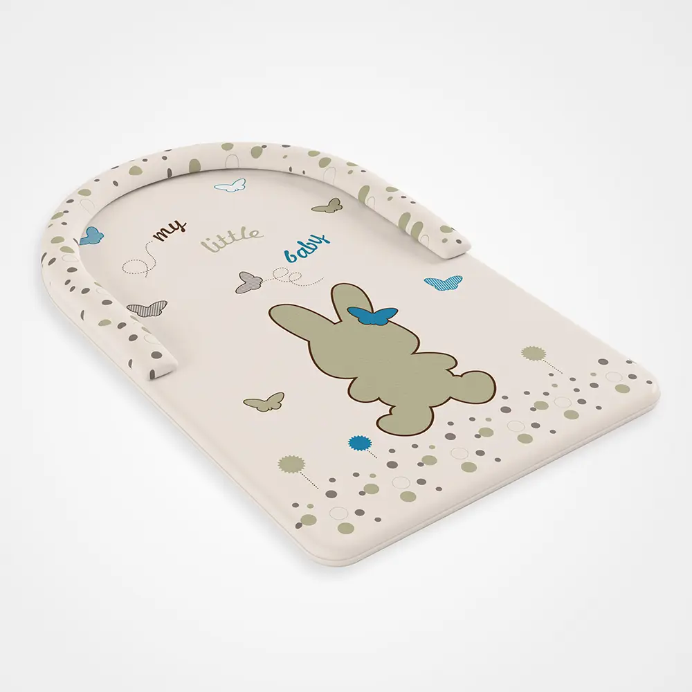 Жёсткое основание позволяет легко устанавливать доску на борта кроватки, а небольшие ножки надёжно фиксируют её, предотвращая непроизвольное соскальзывание. Небольшой бортик-валик в форме подковы. Клеенчатое, мягкое покрытие легко моется тёплой водой и моющим средством. А озорные принты на приятном фоне привлекут внимание малыша.