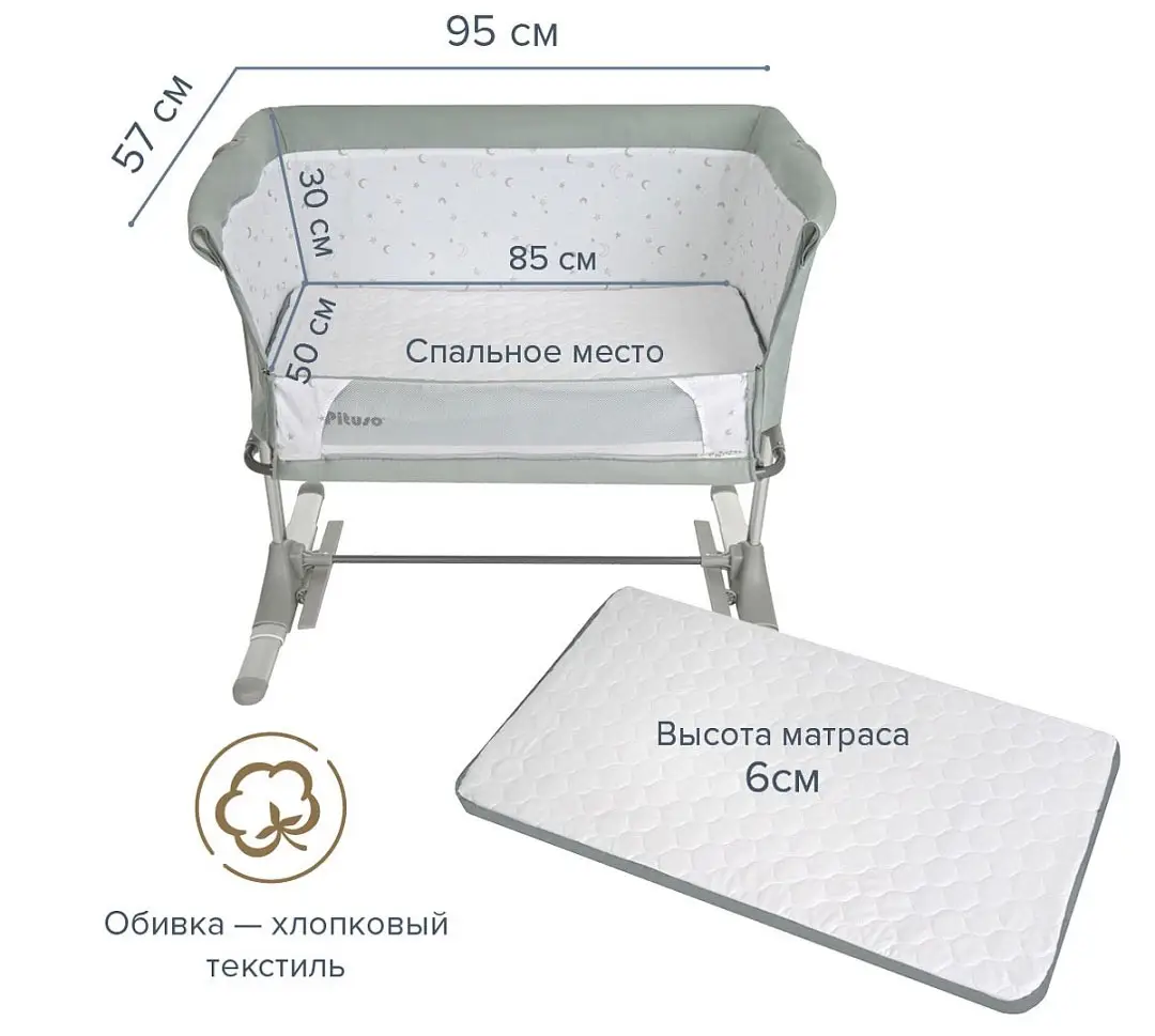 Приставная колыбель-трансформер Pituso Kalma имеет безопасную систему крепления к кровати родителей и позволяет вам спать рядом с малышом. У...