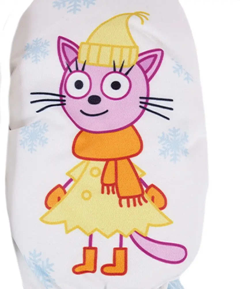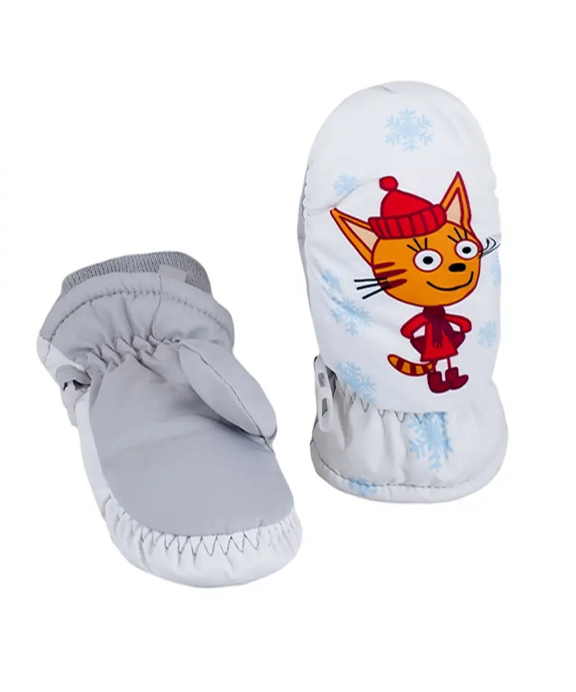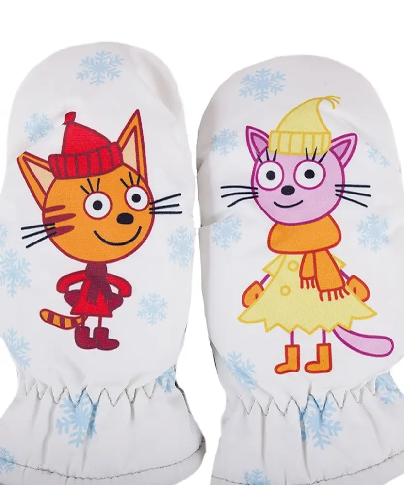 Рукавицы из прочного водоотталкивающего, ветронепроницаемого и грязеотталкивающего материала. Утеплитель синтепон Comfort insulation, средняя степень утепления от 0 до -15. Подкладка полиэстер с начесом. Застежка на липучке спереди для удобного одевания, эластичные резинки для фиксации изделия на запястье. Декорированы принтом.
