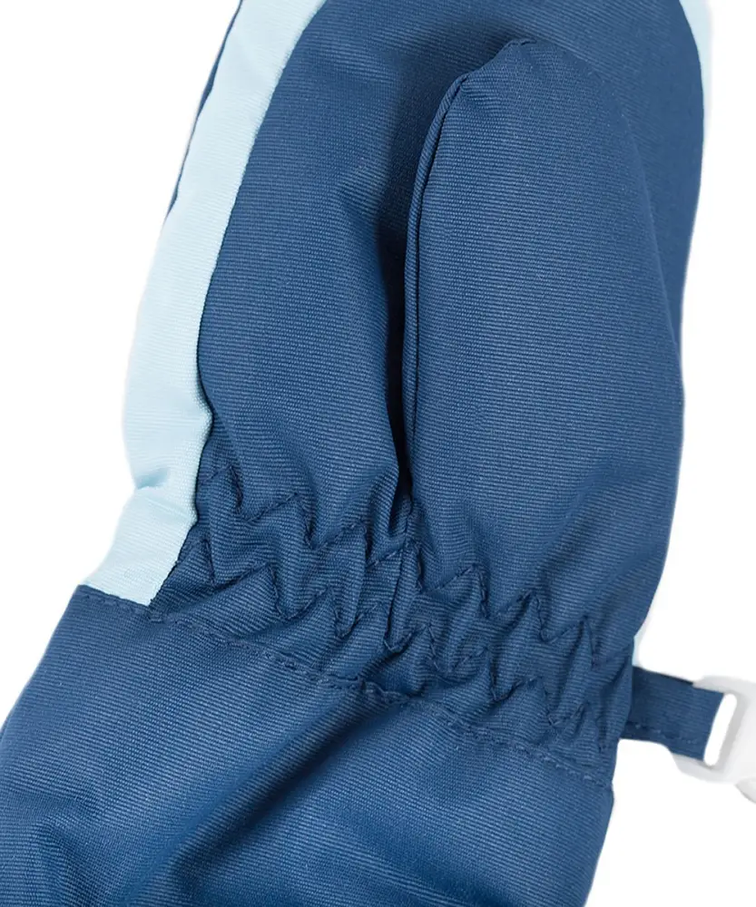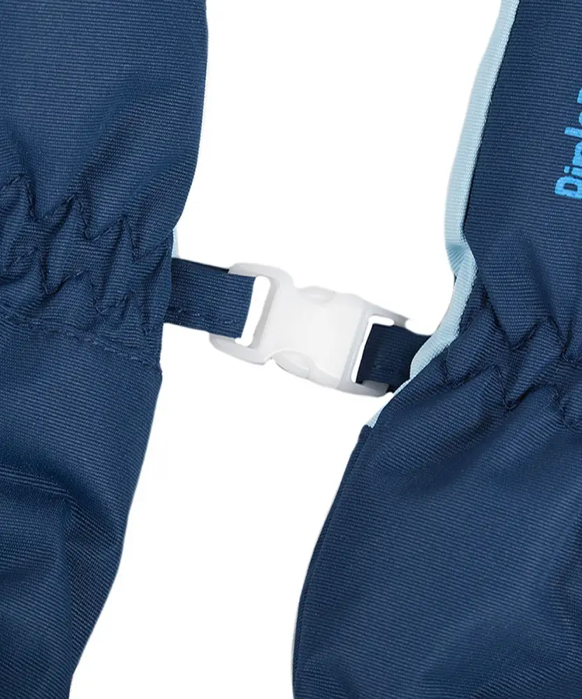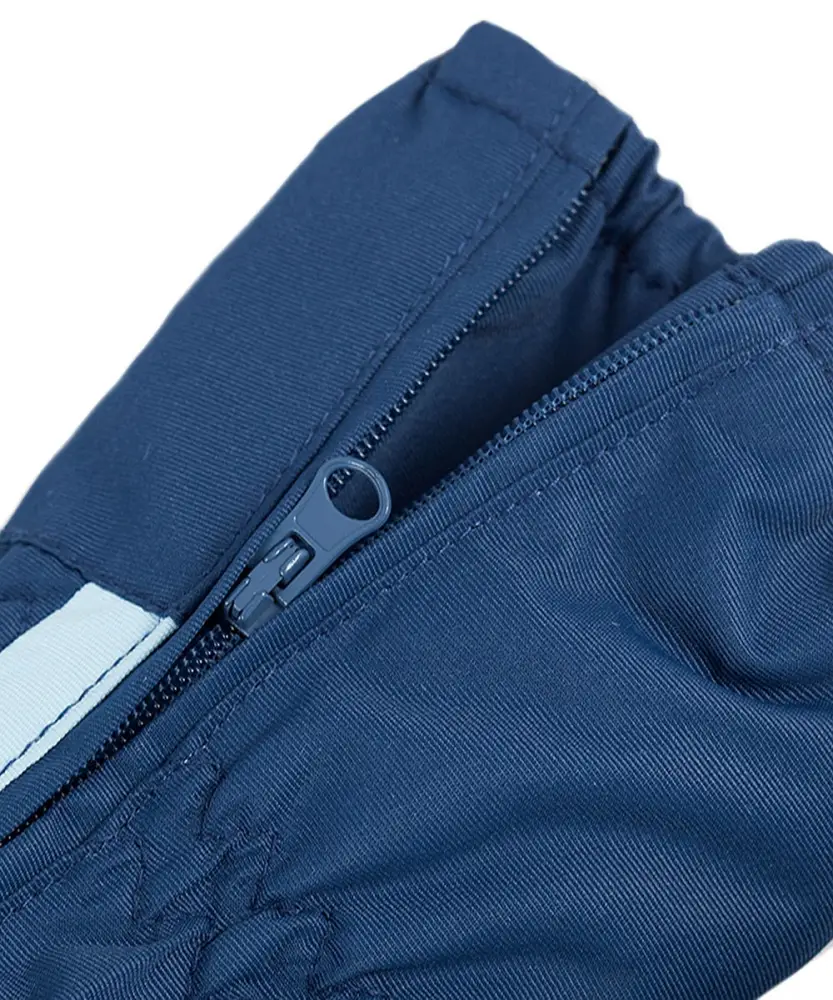 Рукавицы легко надевать благодаря длинной молнии, эластичные резинки для фиксации изделия на запястье и по краю раструба. Декорированы светоотражающей вставкой.