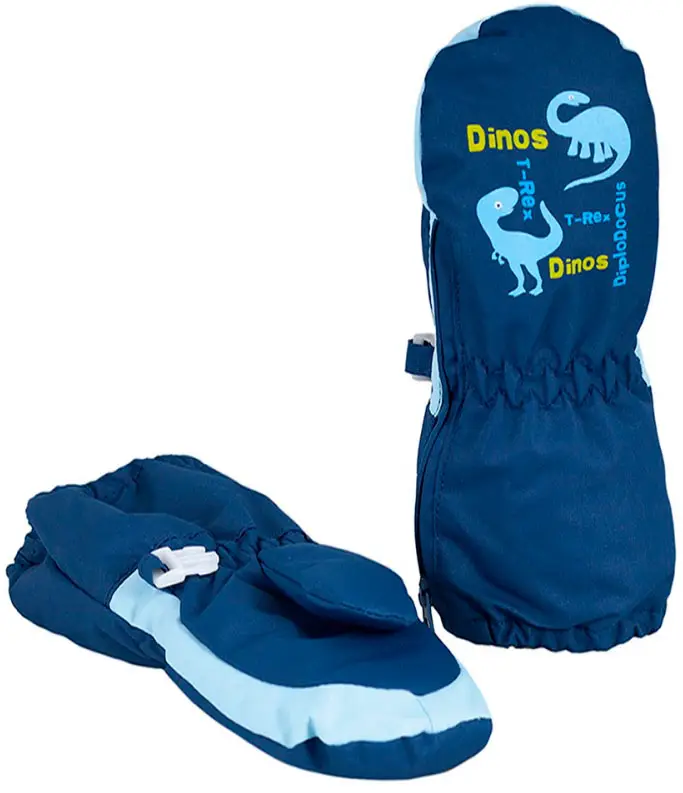 Рукавицы легко надевать благодаря длинной молнии, эластичные резинки для фиксации изделия на запястье и по краю раструба. Декорированы свет...