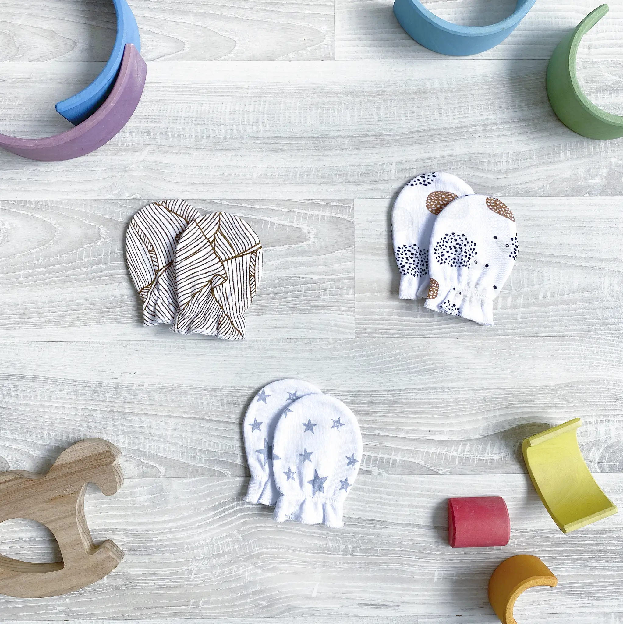 3 пары стильных рукавичек на резиночке – это must have при уходе за маленьким ребёнком.