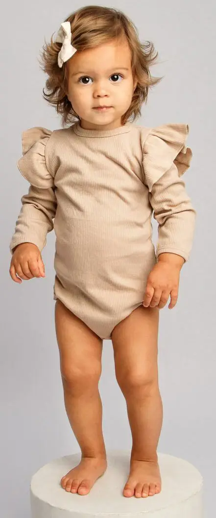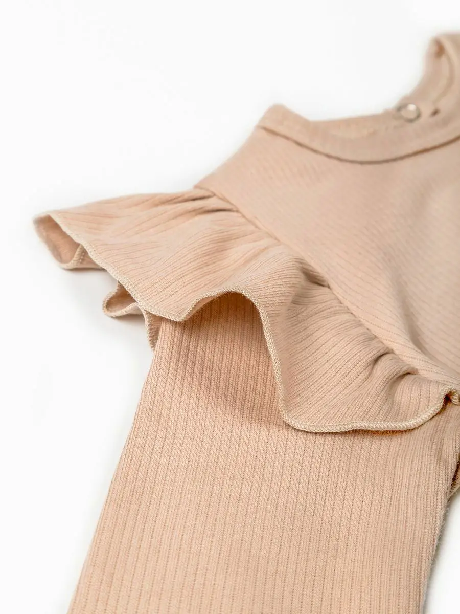 Боди детское с длинным рукавом с рюшами AMAROBABY Fashion, бежевый, р.56
