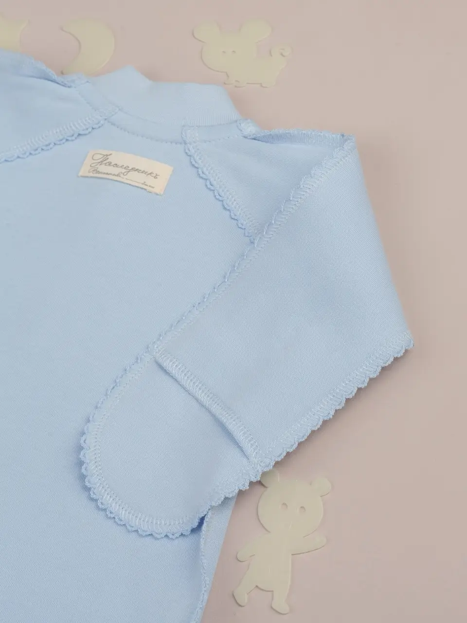Боди длинный рукав с нецарапками Наследник Выжанова органик интерлок однотонный вышивка голубой 56