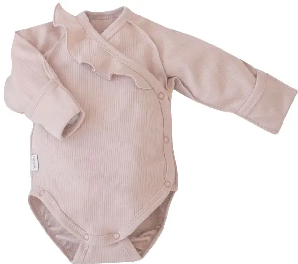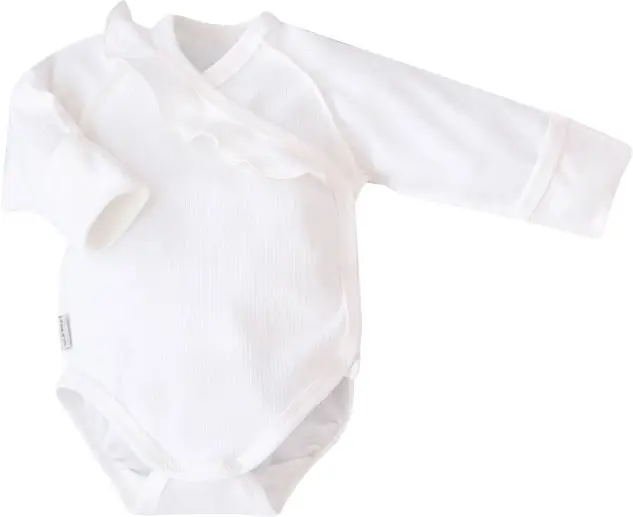 Боди с запахом, с кнопочками наискосок. Рукав от линии ворота исключает натирание в проблемной плечевой-подмышечной зоне младенца. Запах на груди исключает давление кнопок при лежании на животике. Изготовлен из натурального хлопка – в нём малышу будет тепло и комфортно.
