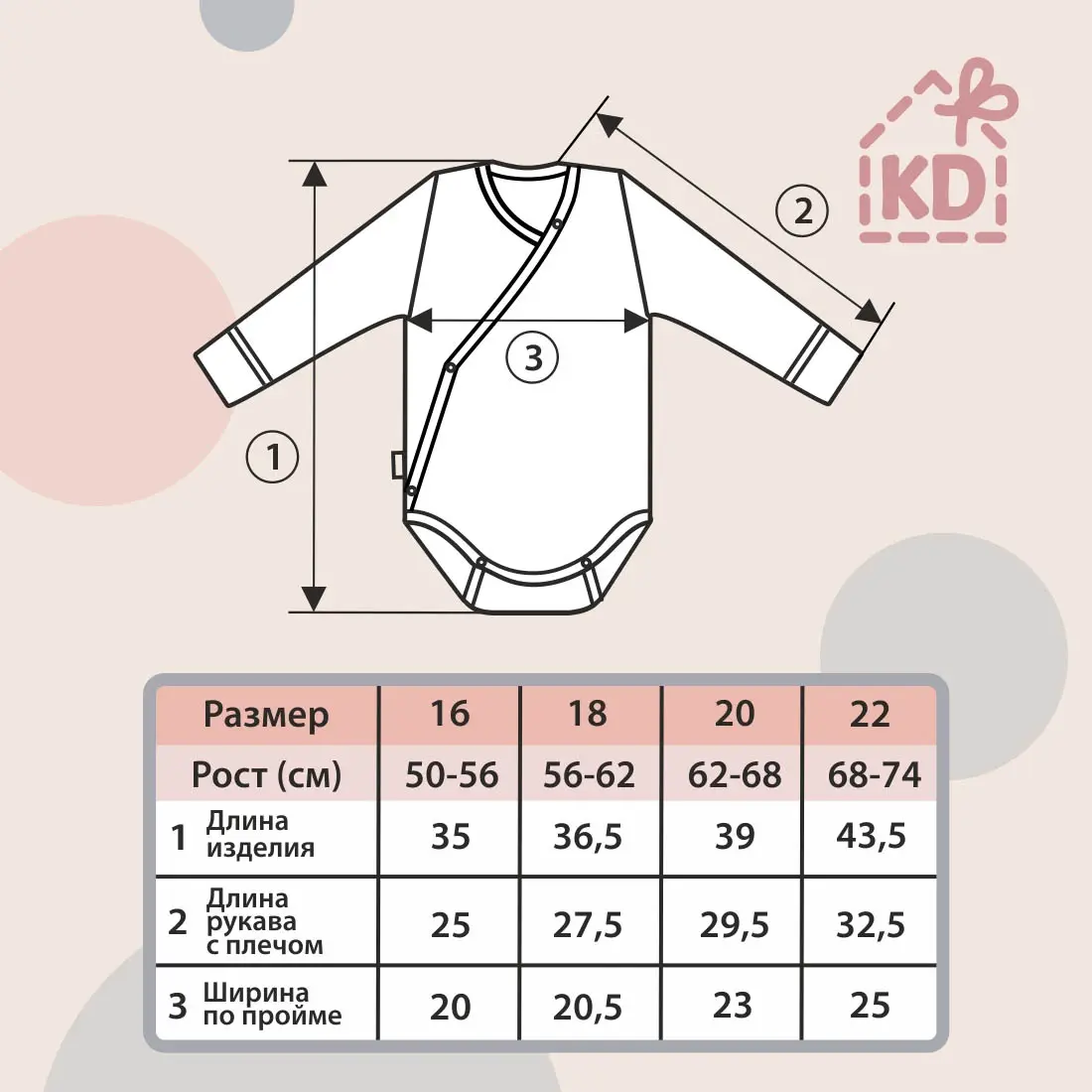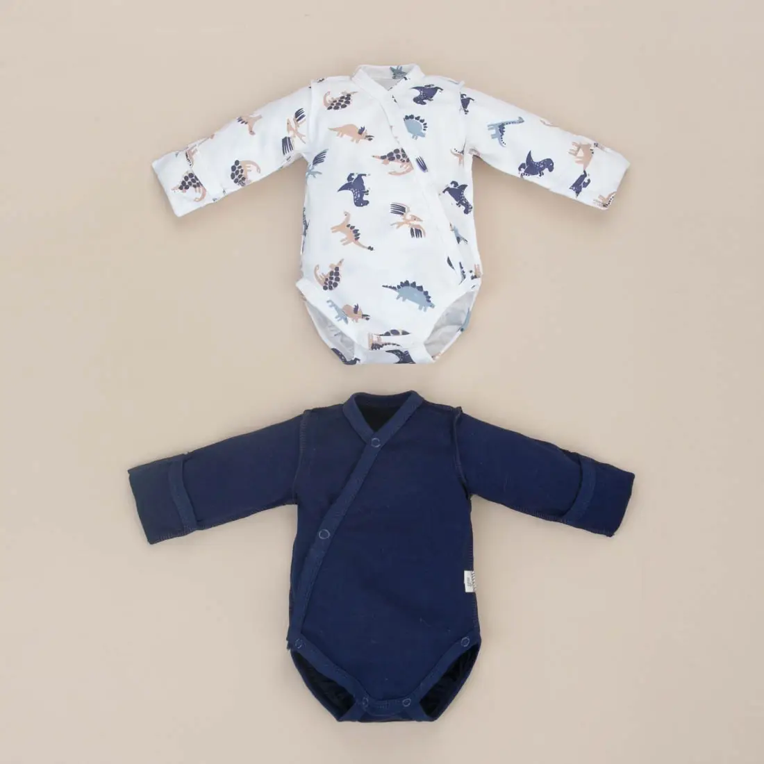 Благодаря симметричной застёжке на кнопки, эти боди легко надевать и снимать, а удобный запах гарантирует надёжную фиксацию и защиту от холода.
