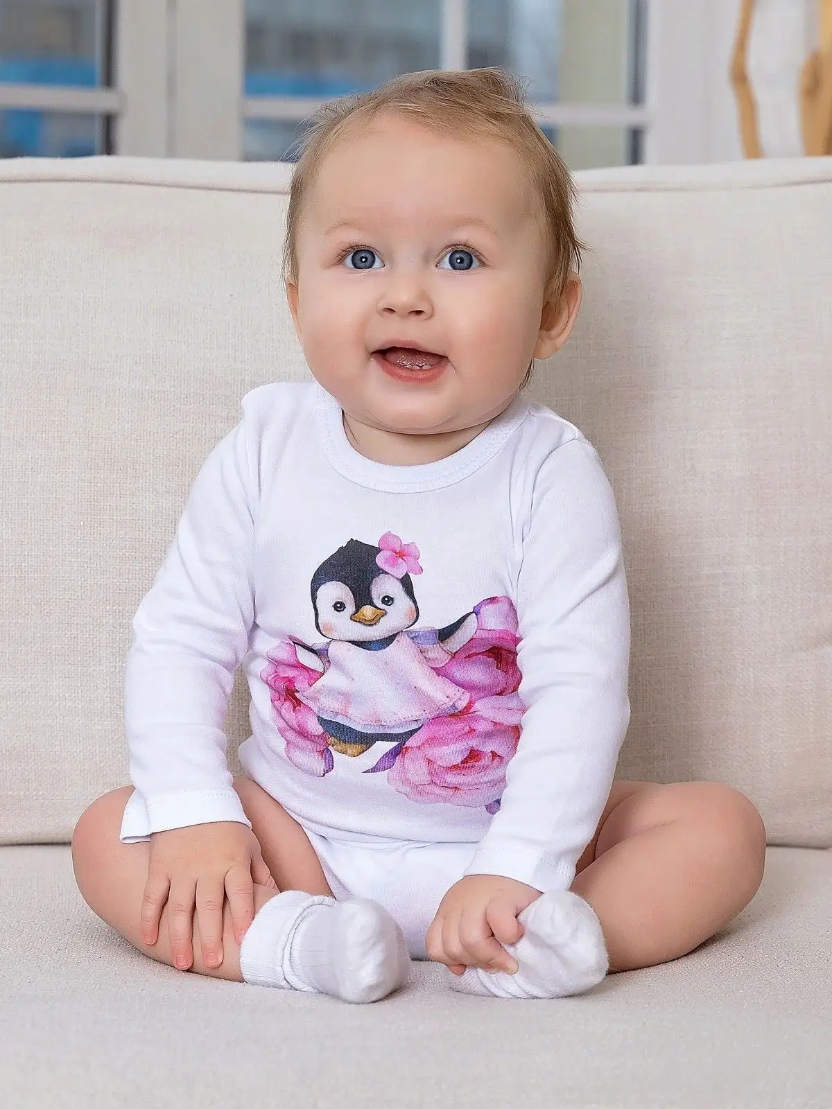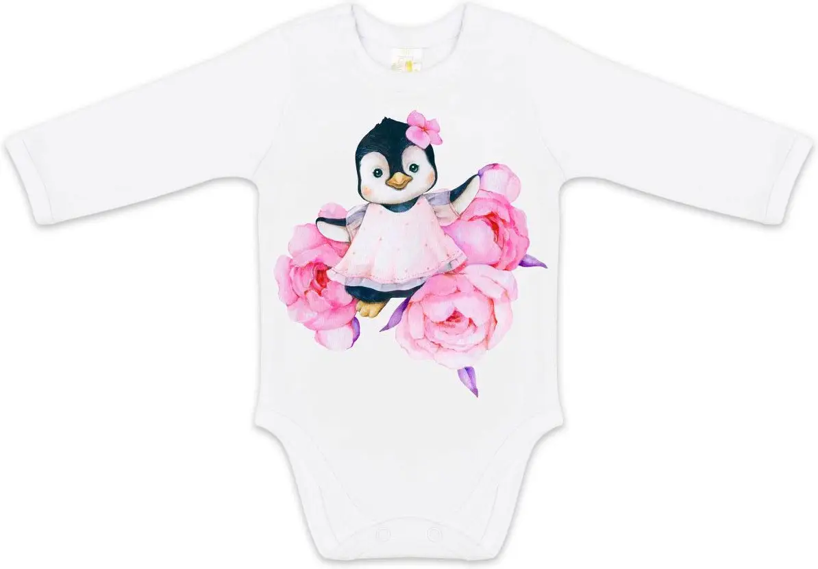 Боди с длинным рукавом Luxury Baby Пингвиночка в пионах белый 68