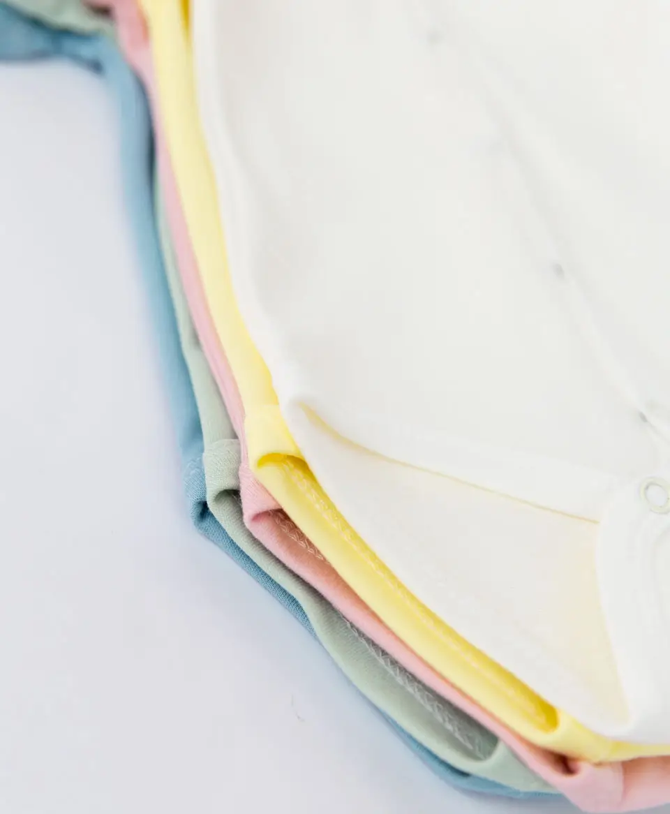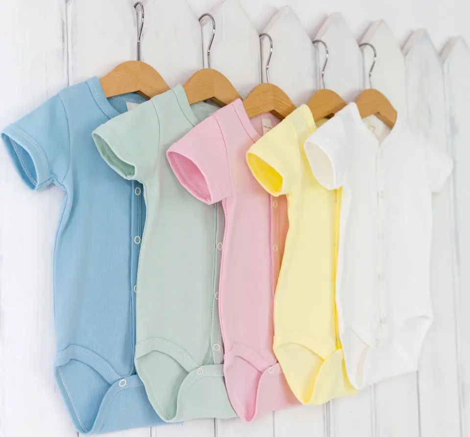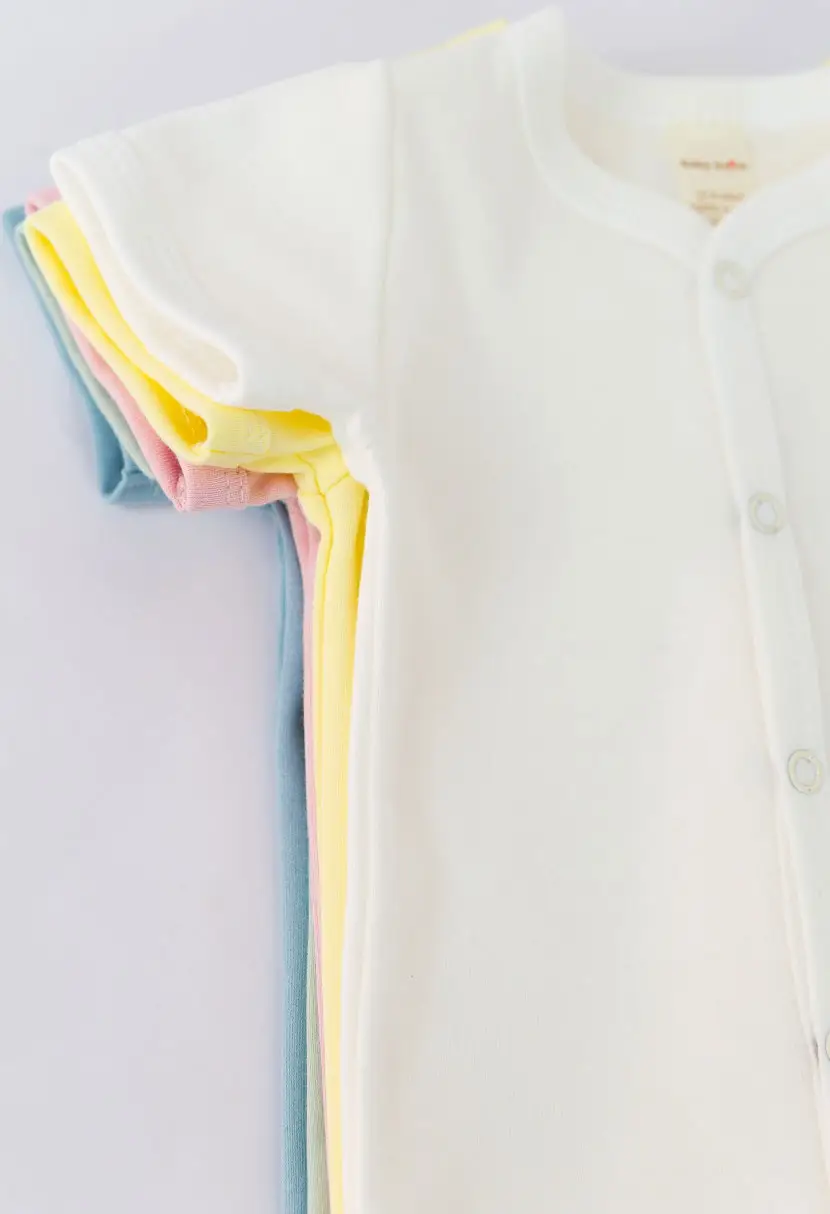 Боди с коротким рукавом, выполнен из однотонного интерлока, 100% хлопок. Распашная застёжка на кнопках.