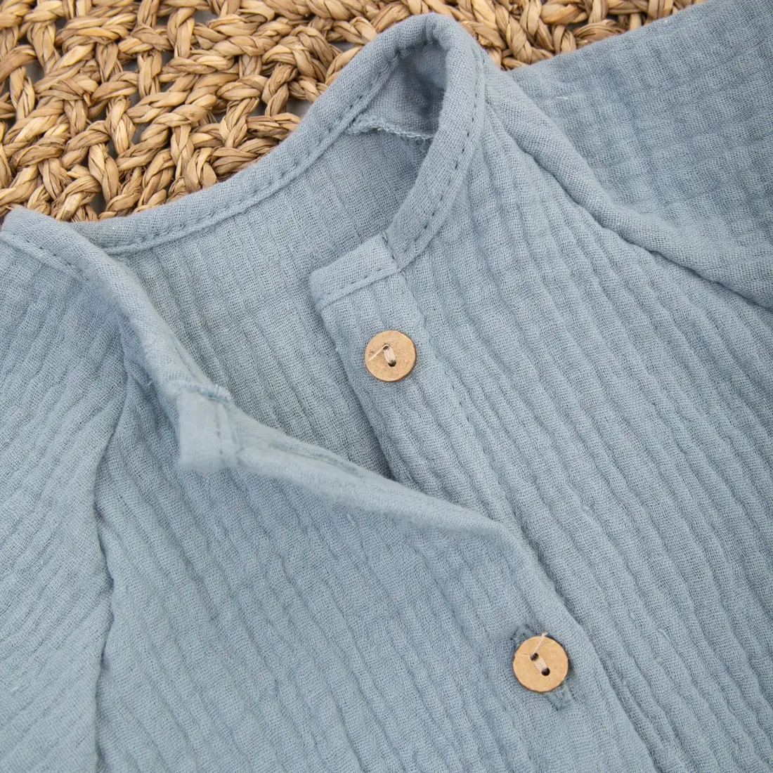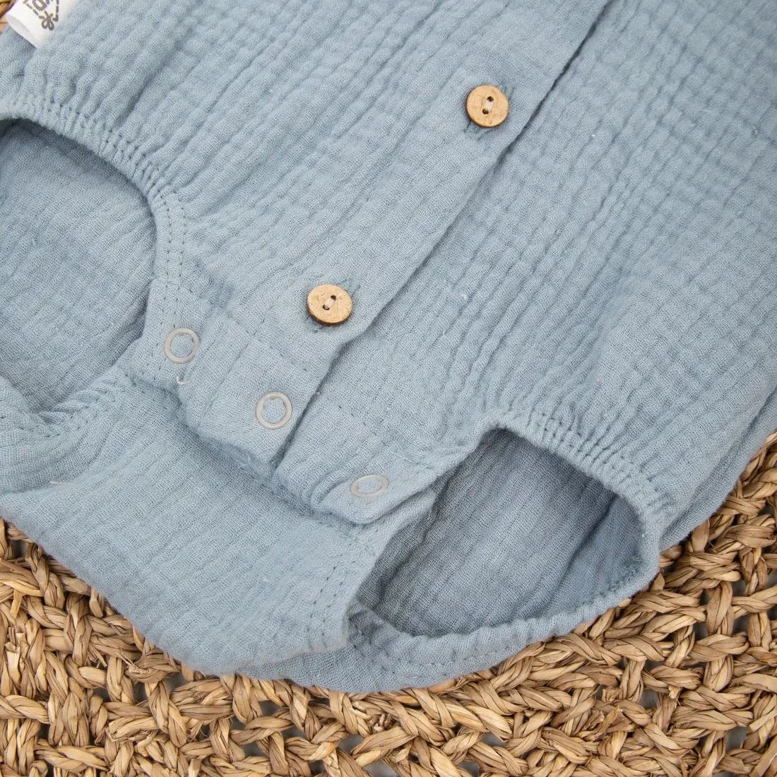 Летний хлопковый боди с короткими рукавами и пуговицами спереди идеально подходит для жаркой погоды. Благодаря трём кнопкам внизу, его удобно использовать для смены подгузника. 100 % хлопок (муслин) обеспечит комфорт и воздухопроницаемость.