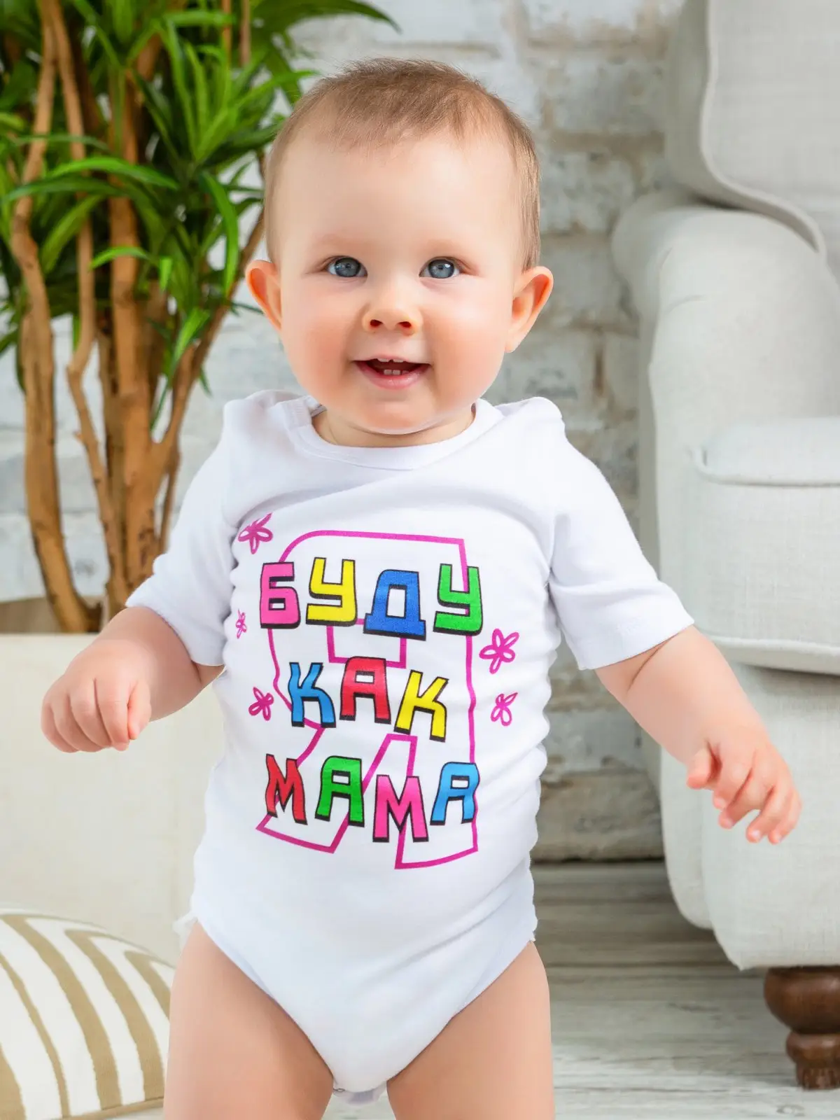 Боди с коротким рукавом Luxury Baby Буду как мама белый 86