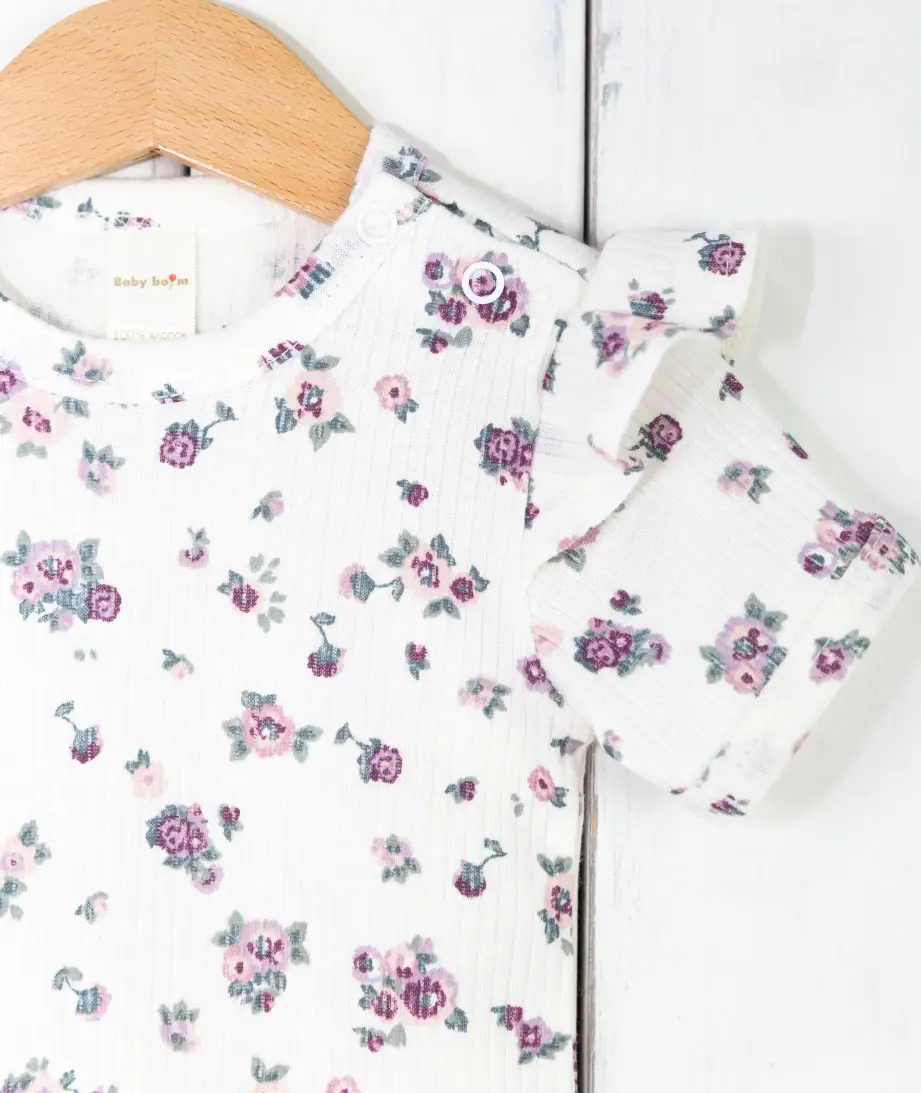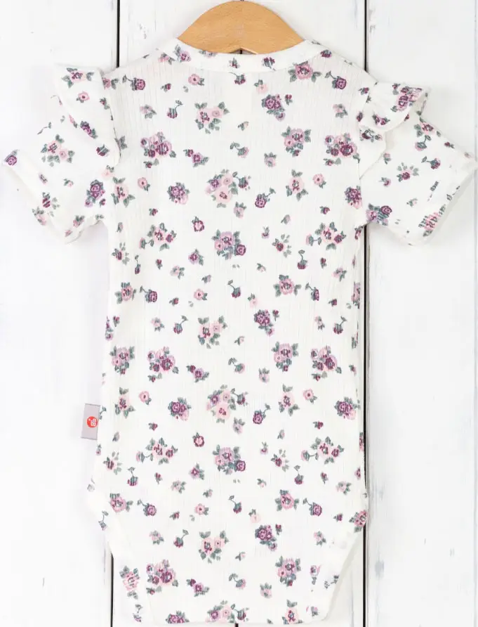 Боди с крылышками и коротким рукавчиком, выполнен кашкорсе лапша с изысканным принтом, 100% хлопок.