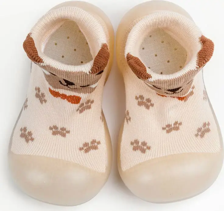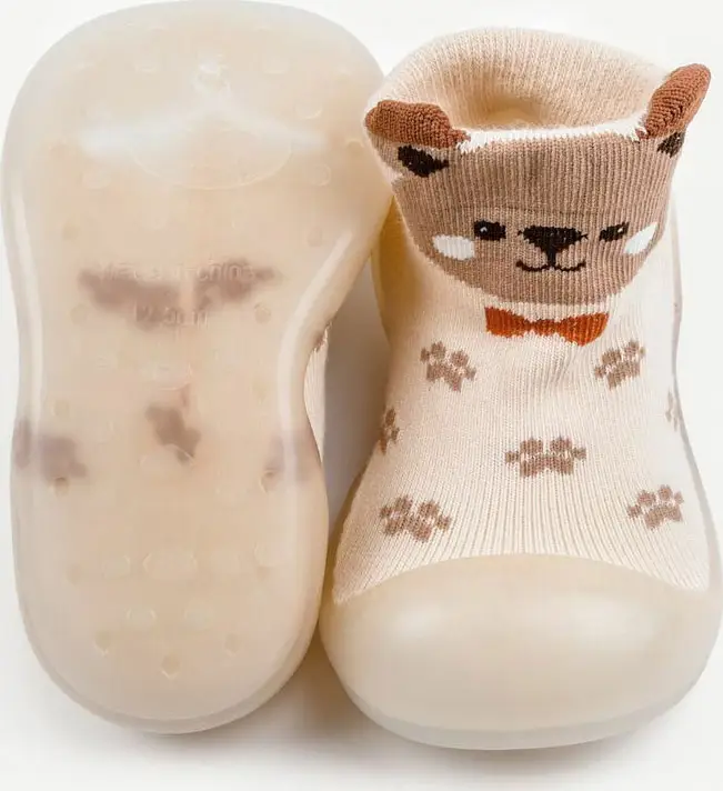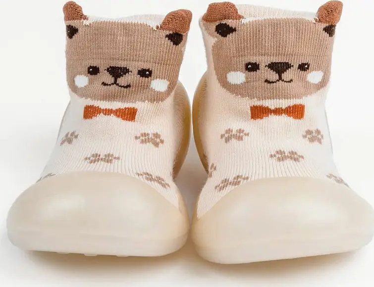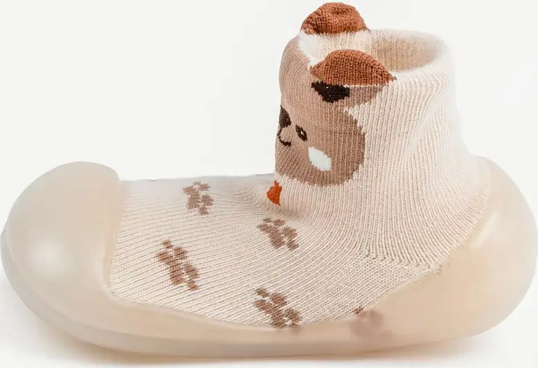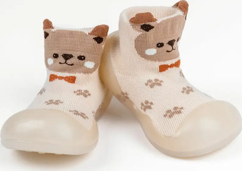 Ботиночки носочки детские Amarobaby First Step Animals бежевые, с дышащей подошвой, размер 23