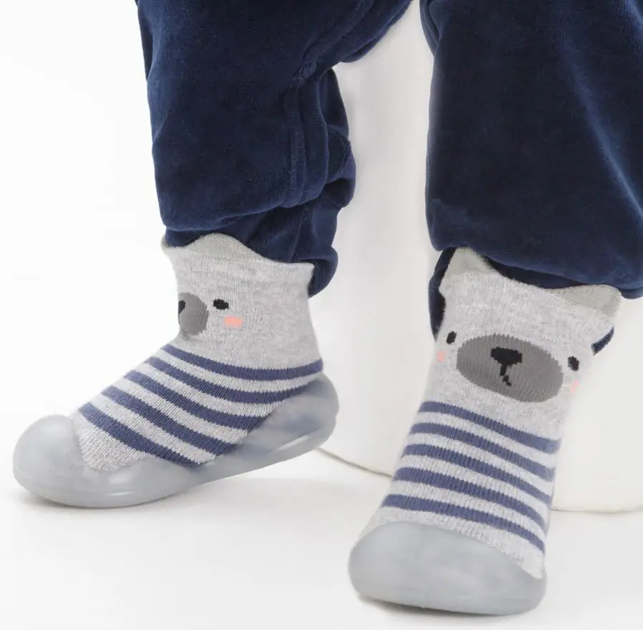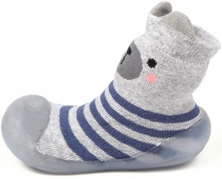 Ботиночки носочки детские Amarobaby First Step Bear серые, размер 23, с дышащей подошвой