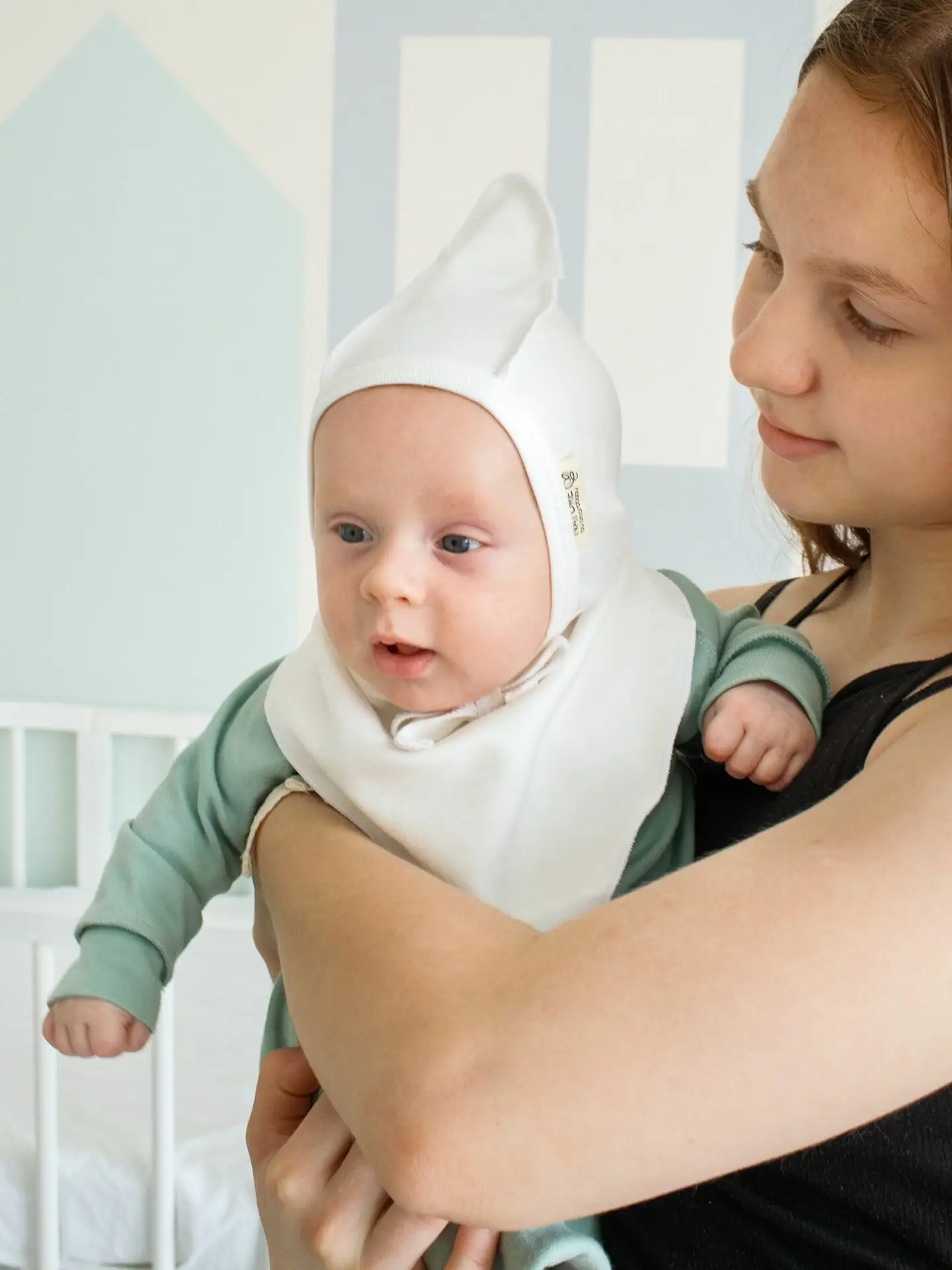 Лаконичные линии, невероятная мягкость ткани и натуральный состав из 100% хлопка. Детские чепики имеют классическую форму и удобные зав...