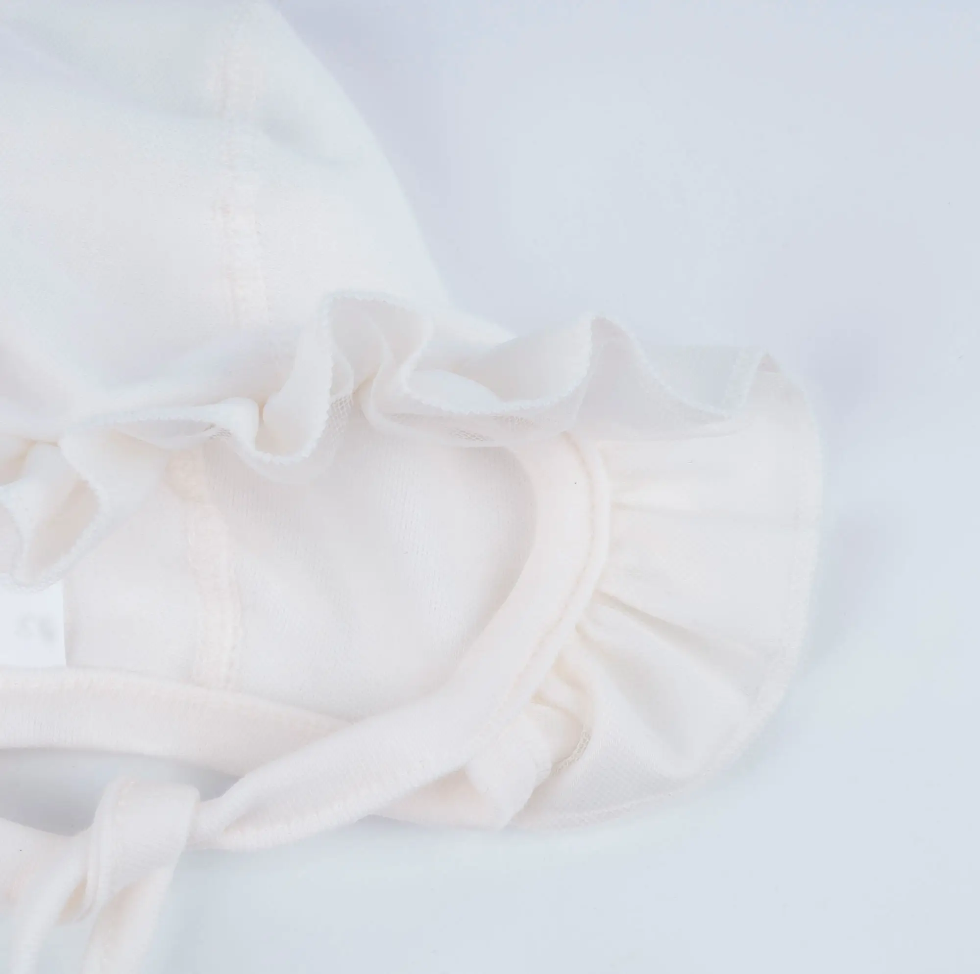 Чепчик Наследник от швейной мануфактуры Fleole отлично прикрывает ушки и хорошо держится на головке малыша.