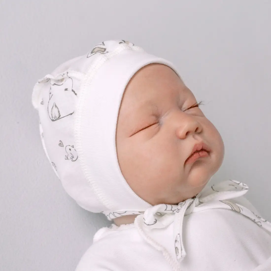 Чепчик НKiDi отлично прикрывает ушки и хорошо держится на головке малыша.