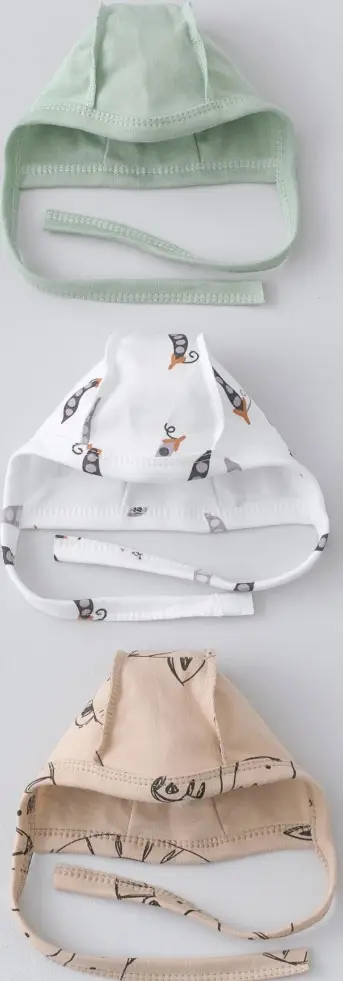 Чепчики однотонного цвета с принтом от KiDi kids изготовлены из качественной и дышащей ткани. Модель отлично прикрывает ушки и хорошо держится на голове малыша за счёт завязок.