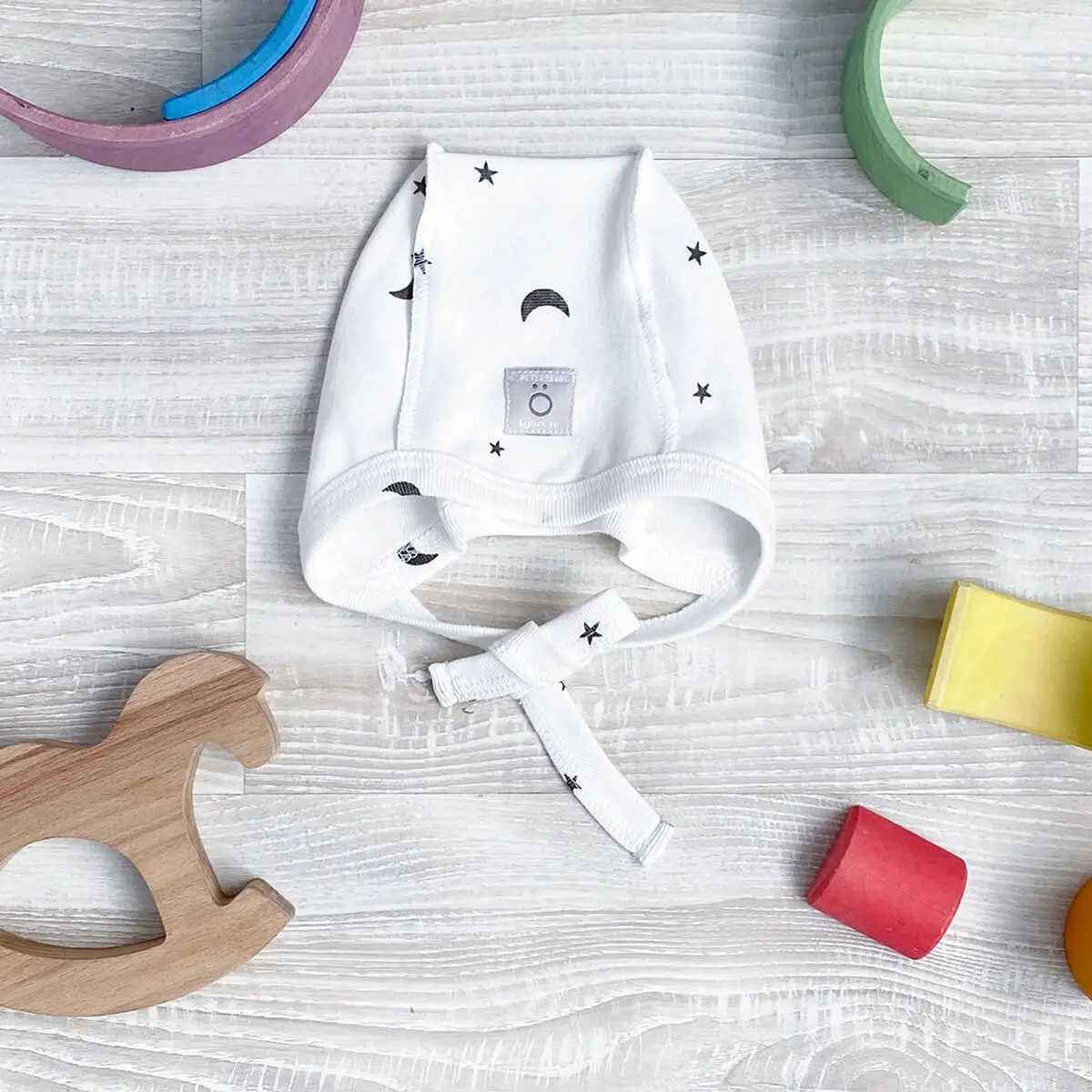Чепчик Mjölk выполнен из тонкого трикотажного хлопка, который мягко облегает головку и ушки малыша, и дарит новорождённому комфорт. Уход: ...