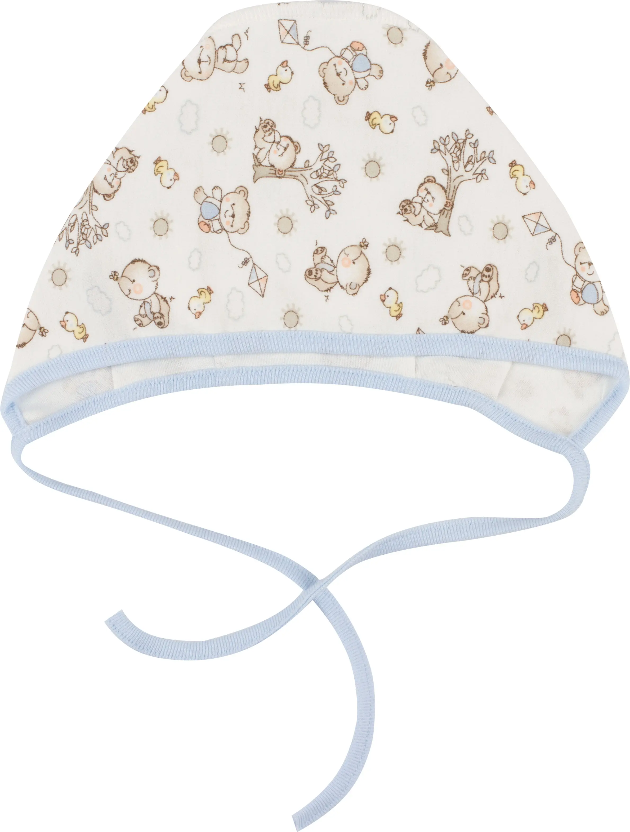 Чепчик выполнен из высокого качества полотна – интерлок и хорошо сочетается с любым нарядом.