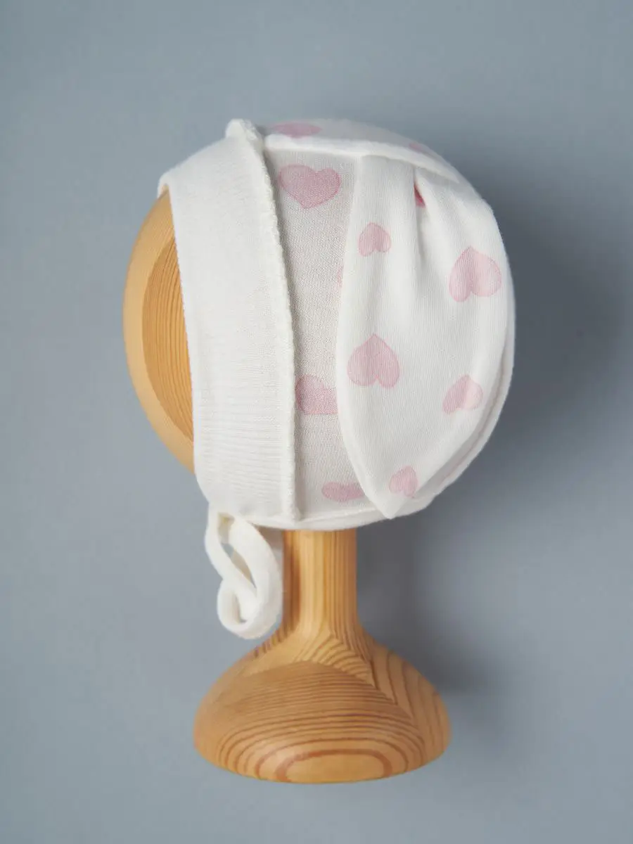 Чепчик с ушками Little Star Заинька-Сердечки, 44 см, интерлок, крем