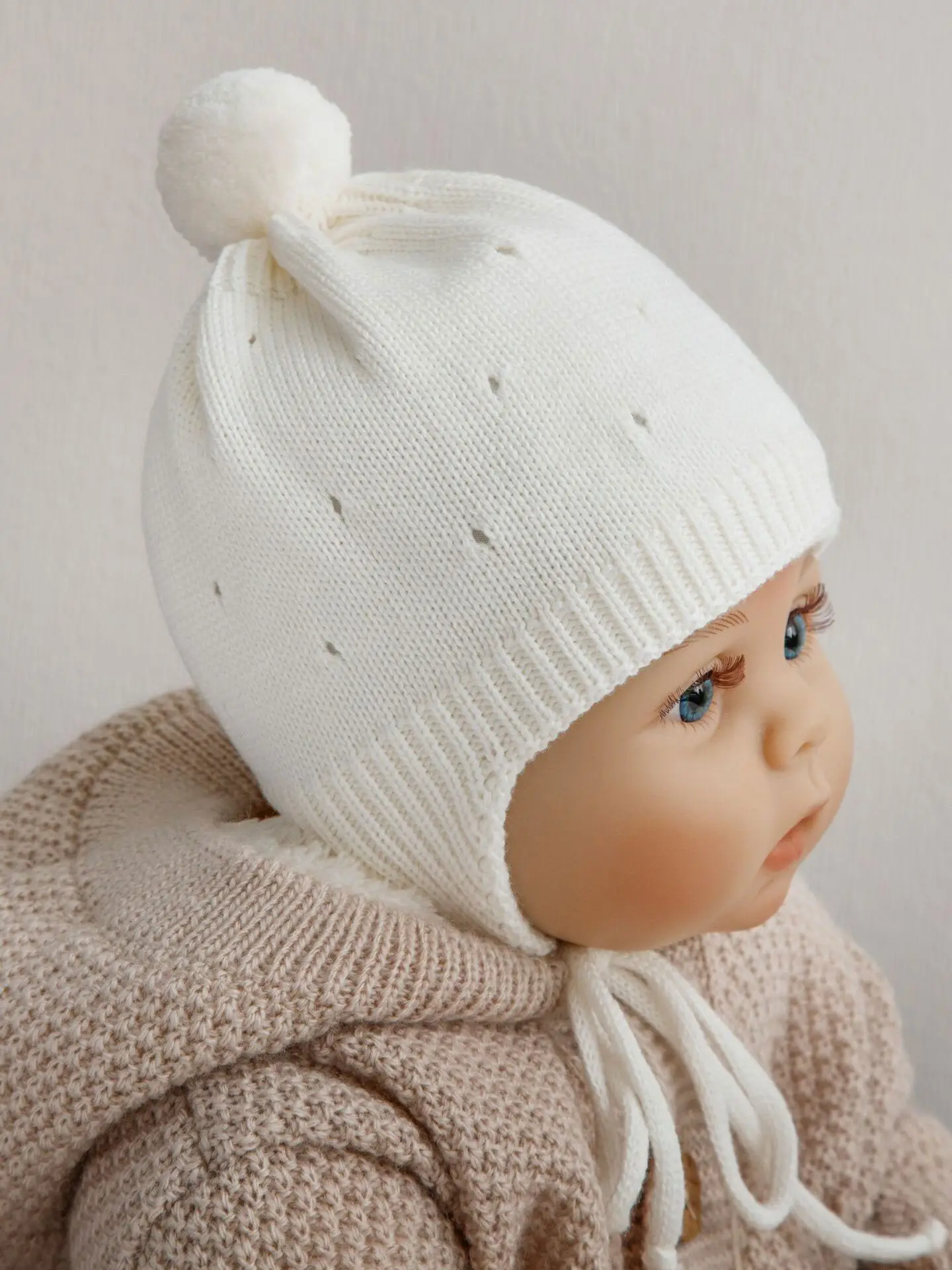 Вязаная шапочка Amarobaby Pure Love Cutie идеально садится на голову ребёнка благодаря удобным завязкам и изгибам на ушках. Внешний слой выполнен из качественной полухлопковой пряжи, обеспечивая комфорт и стиль.