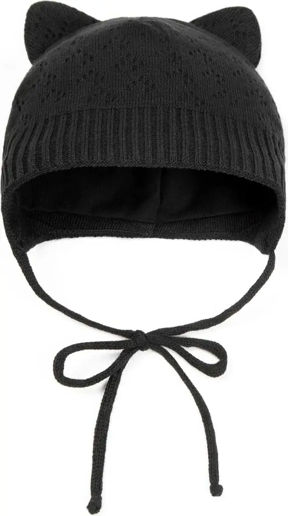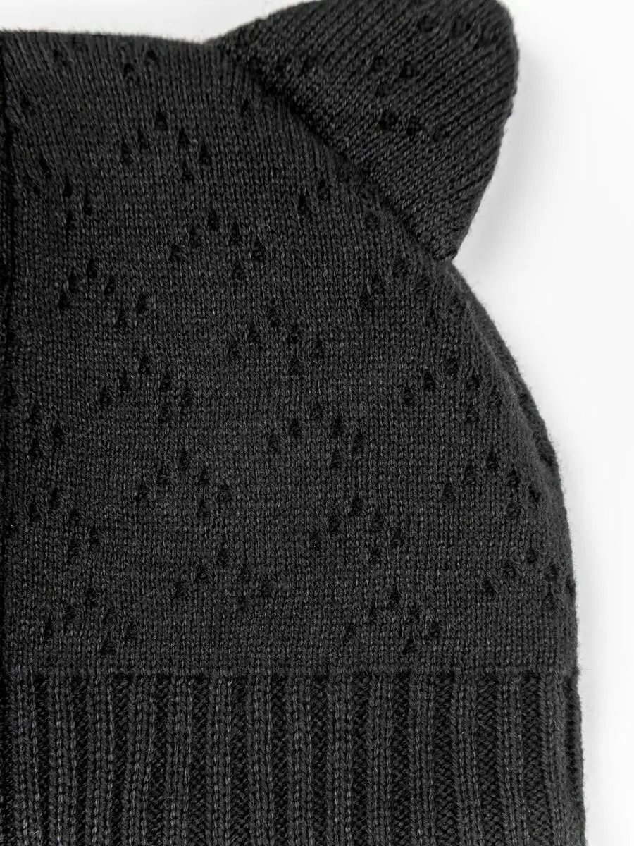 Шапка детская вязаная Amarobaby Pure Love Kitten, размер 42-44, с подкладом, чёрная
