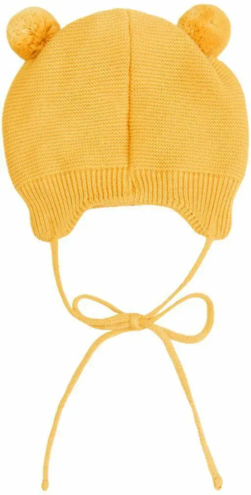 Шапка детская вязаная Amarobaby Pure Love Pompony демисезонная, с подкладом, 38-40, жёлтая