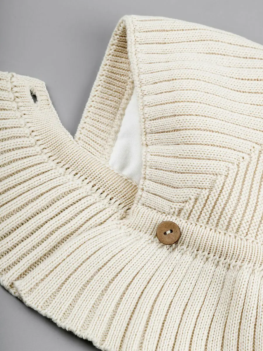 Застёжка пуговица надёжно зафиксирует шапочку на голове ребёнка. Верхний слой выполнен из качественной полухлопковой пряжи. Изнутри шапка детская утеплена натуральным мягким слоем трикотажа из 100% хлопка. Благодаря натуральному внутреннему слою, шапочка обладает отличной терморегуляцией, хорошо дышит и защитит от продувания ветром.
