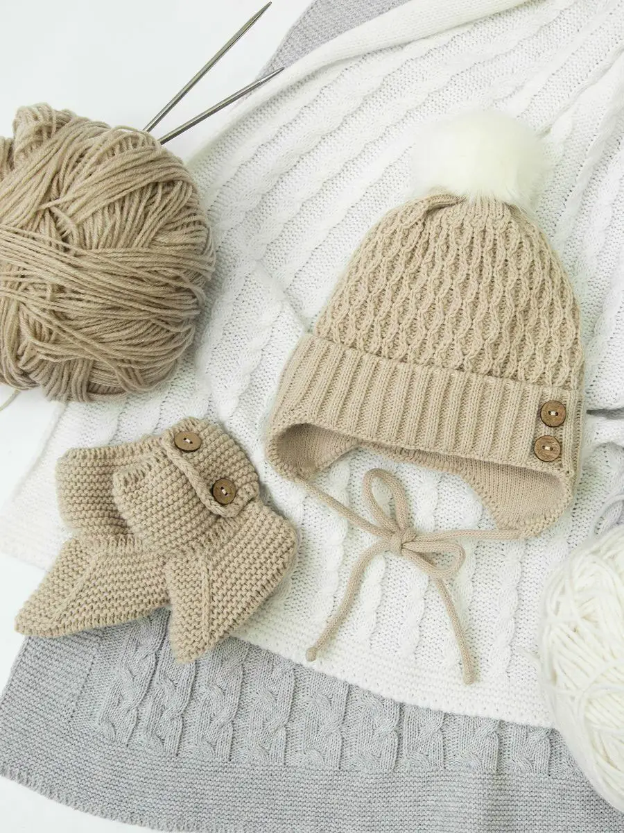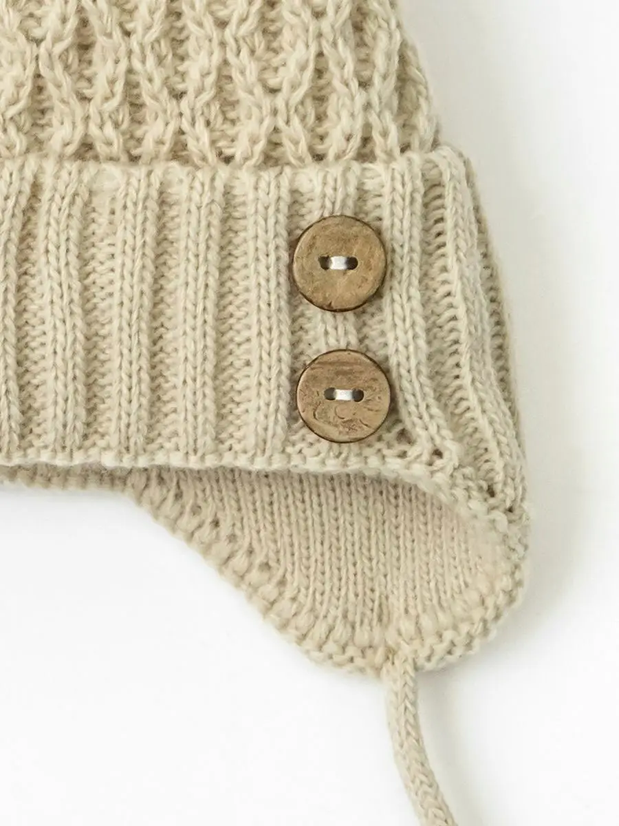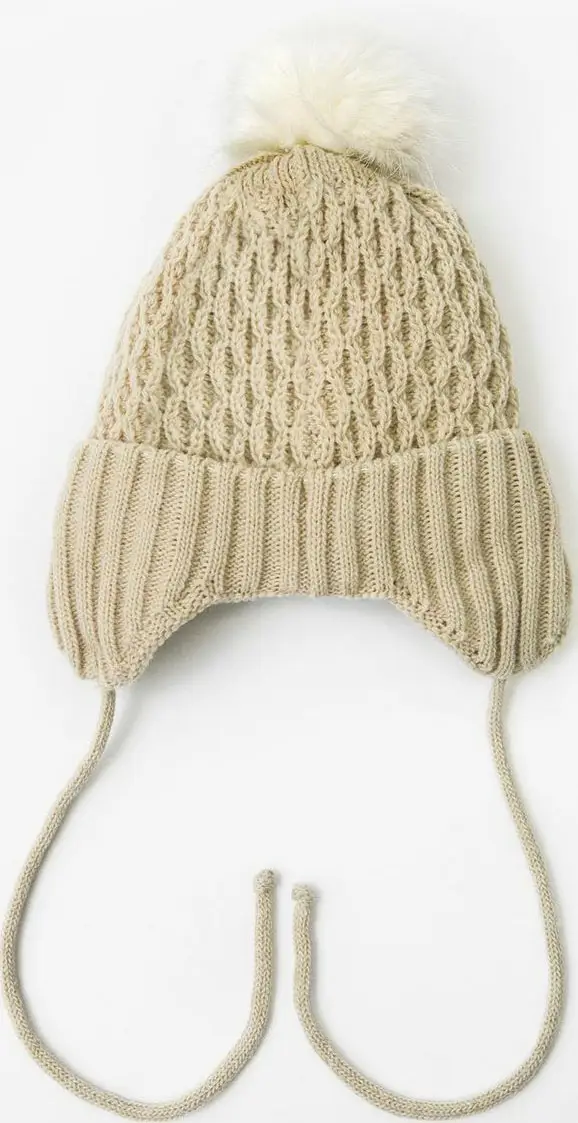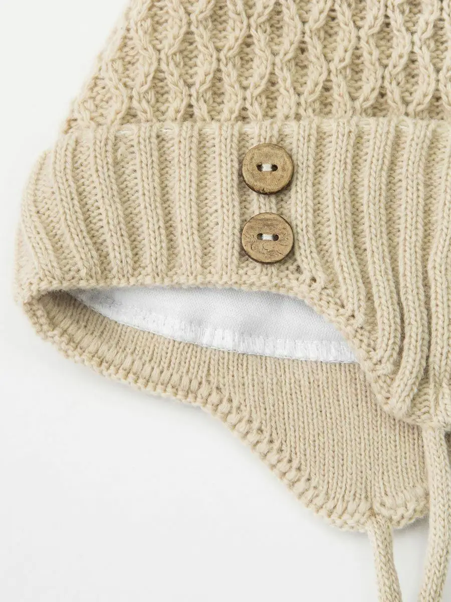 Шапочка детская Amarobaby Pure Love Wool вязаная, утепленная, бежевая, 40-42
