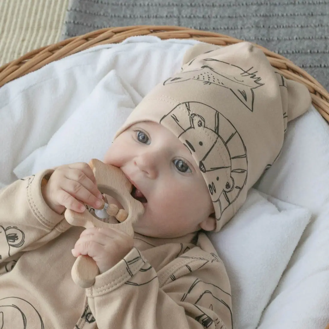 Этот очаровательный комплект из трёх шапочек с отворотом и милыми ушками станет прекрасным выбором для новорождённых малышей. Разнообрази...