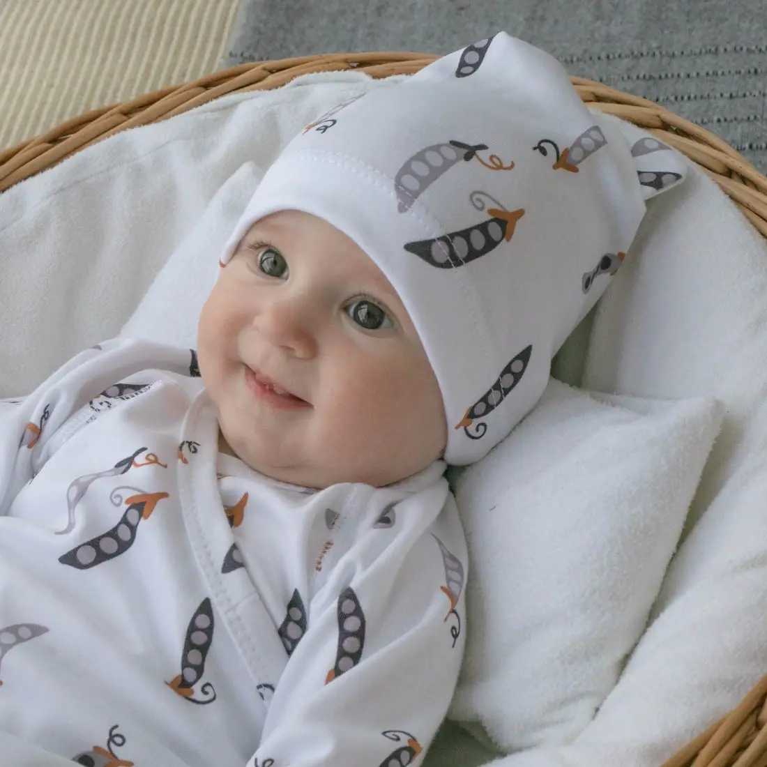 Шапочка легкая с отворотом и ушками KiDi Kids, Крошки Горошки, 3 шт, на 6-12 мес.