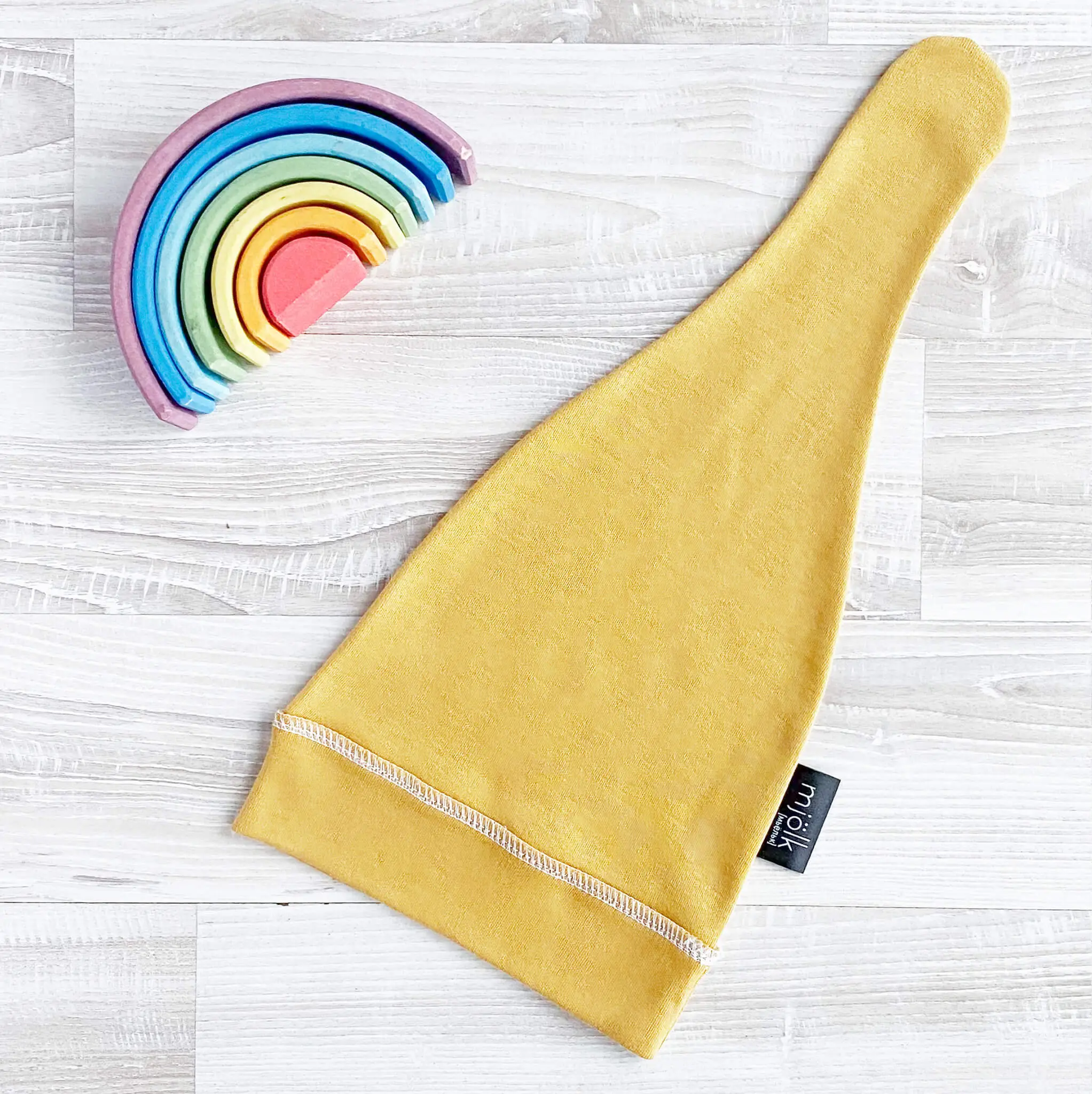 Кроме того, что шапочка с узелком Mjölk хороша сама по себе, она еще и функциональна! Мама может самостоятельно регулировать глубину шапочки. Подросшему малышу можно носить её без отворота, а также перевязывать узелок! Шапочка с узелком Mjölk выполнена их трикотажного хлопка, который подходит нежной коже новорождённого, не вызывает аллергии и дарит малышу комфорт.