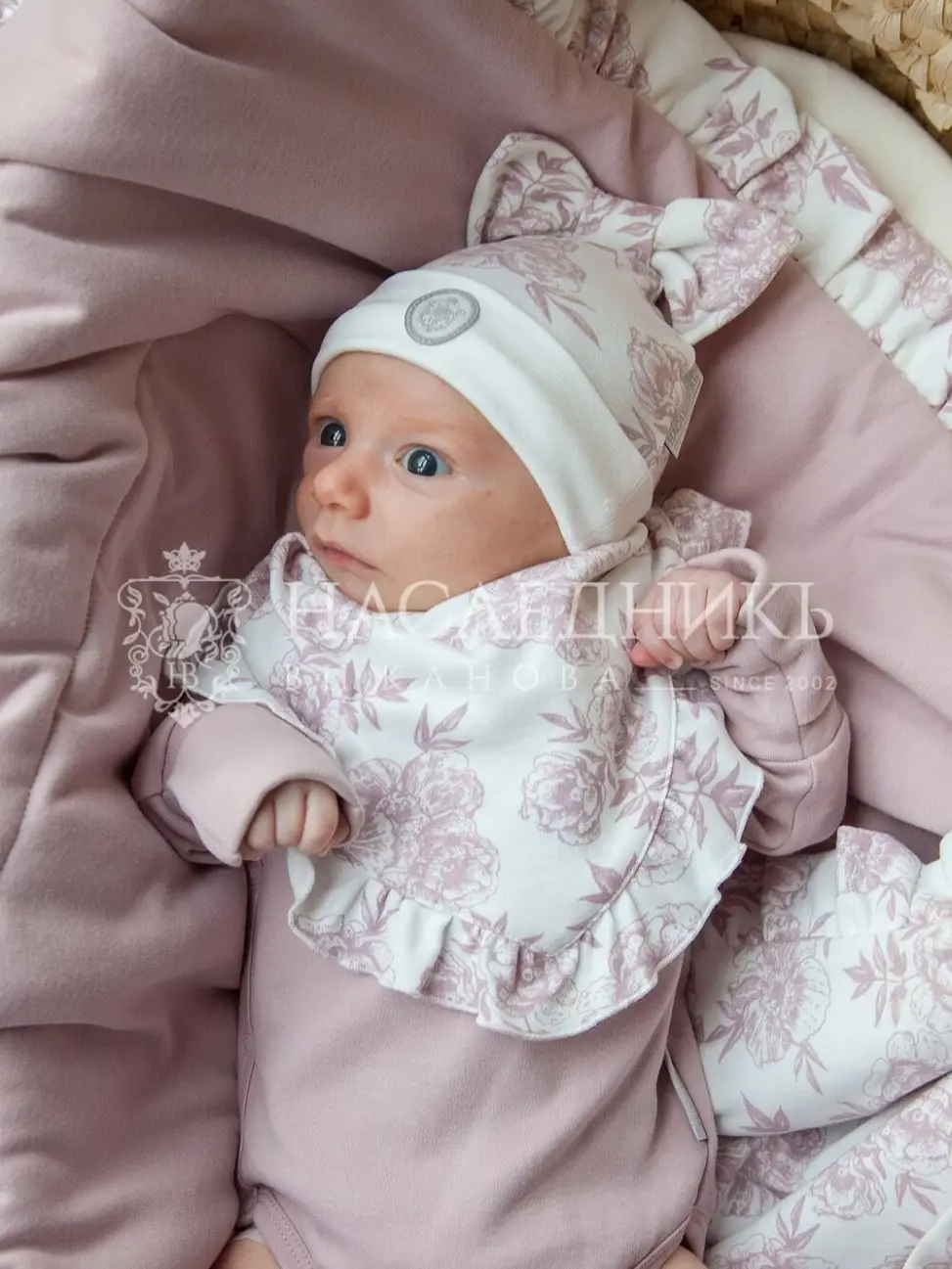 Шапочка выполнена их трикотажного хлопка, который подходит нежной коже новорождённого, не вызывает аллергии и дарит малышу комфорт. Материал...