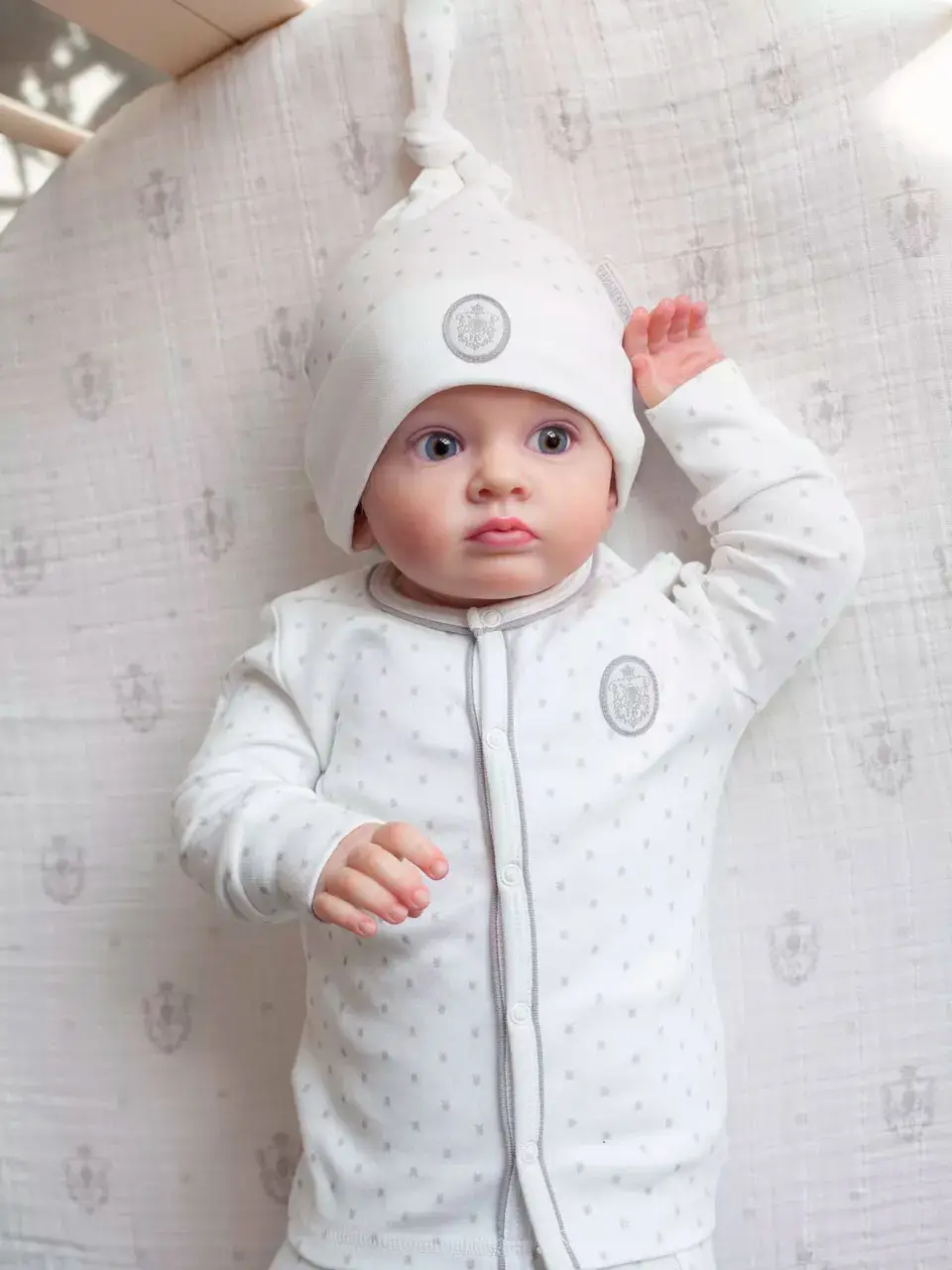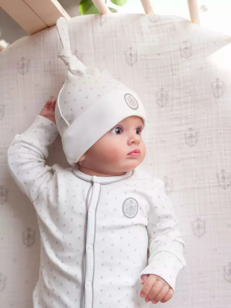 Шапочка выполнена их трикотажного хлопка, который подходит нежной коже новорождённого, не вызывает аллергии и дарит малышу комфорт. Материал...
